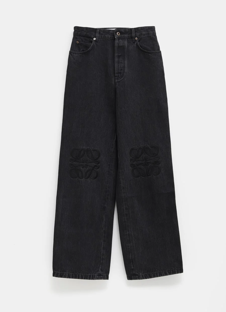 Pantalón vaquero de Loewe en denim de peso medio lavado con Anagramas bordados en las rodillas. Cierre de botones oculto, cinco bolsillos, y parche con logo en la parte trasera. Corte holgado, largo regular, talle medio. Hecho en Italia. Talla normal, escoge tu talla habitual. Tallaje UE para hombre.