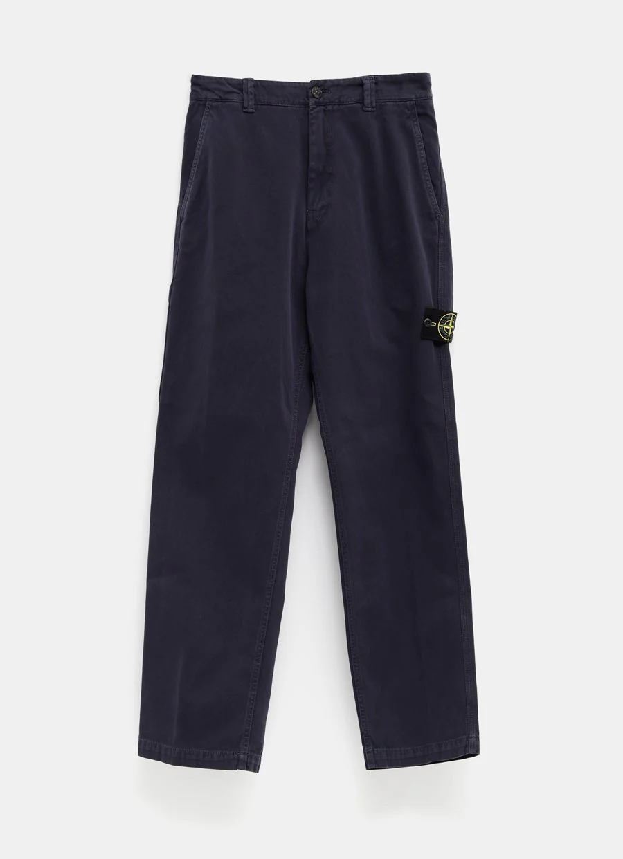 Pantal贸n de Stone Island en lienzo de algod贸n con te帽ido post-confecci贸n, dise帽o cinco bolsillos, cierre con bot贸n y cremallera frontal, detalle de parche con logo y corte regular. Hecho en Italia. Talla normal, escoge tu talla habitual. Tallaje de vaqueros para hombre.