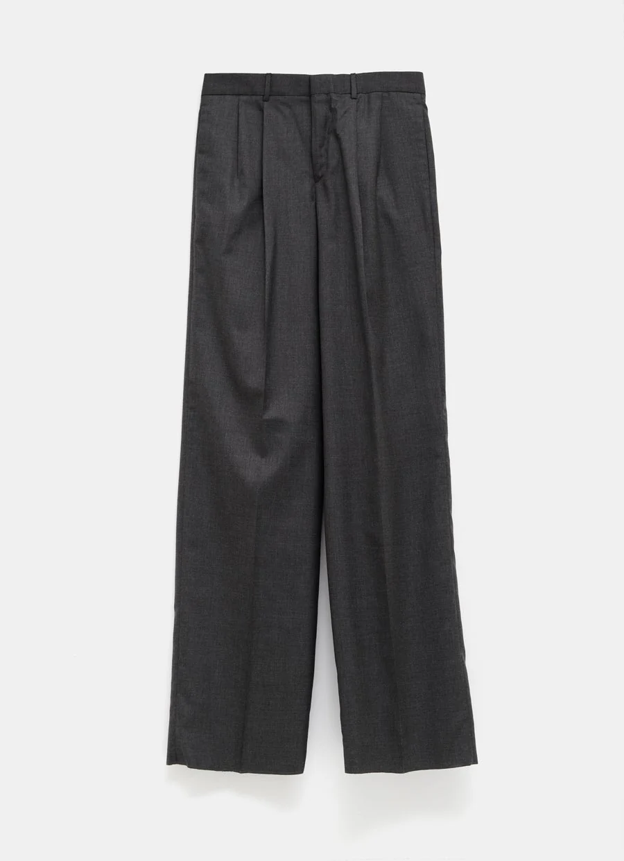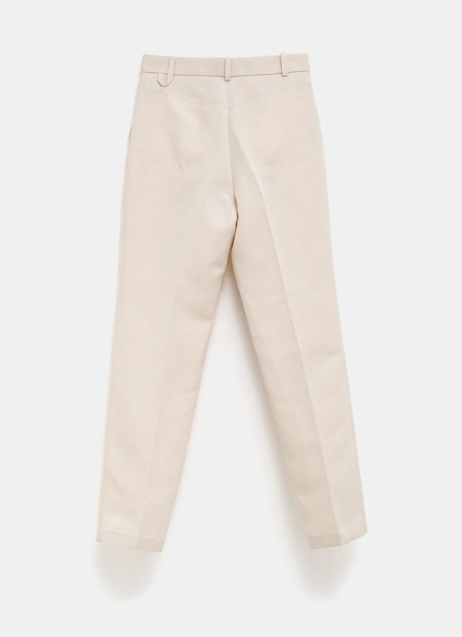 Pantal贸n de Celine en lienzo de lana cashmere con pinzas en la parte frontal, bolsillos laterales, bolsillos traseros con bot贸n y cierre con cremallera y gancho. Tiro medio, pierna ancha y corte holgado. Hecho en Italia. Tallaje UE para hombre.