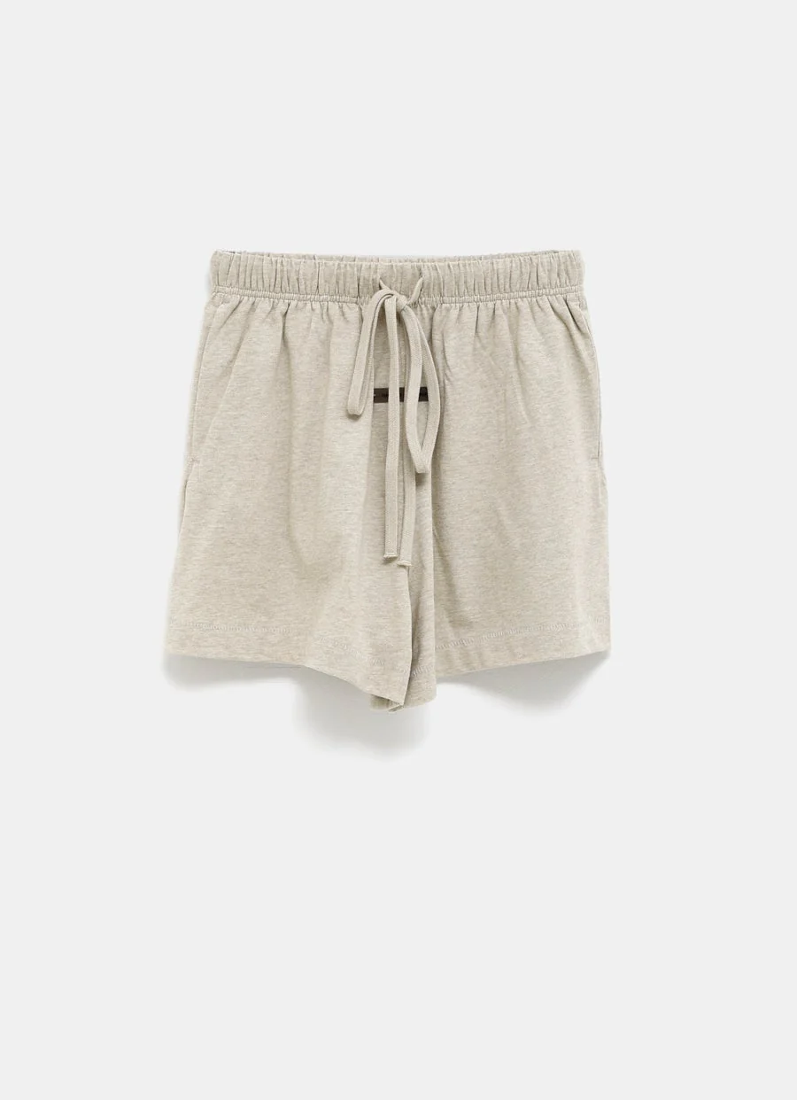 Pantal贸n corto de The Essentials en tejido de algod贸n ligero con cintura el谩stica y cord贸n ajustable, bolsillos laterales, etiqueta de goma en la parte frontal, corte relajado y largo por mitad del muslo. Talla normal, elige tu talla habitual. Tallaje est谩ndar para mujer.