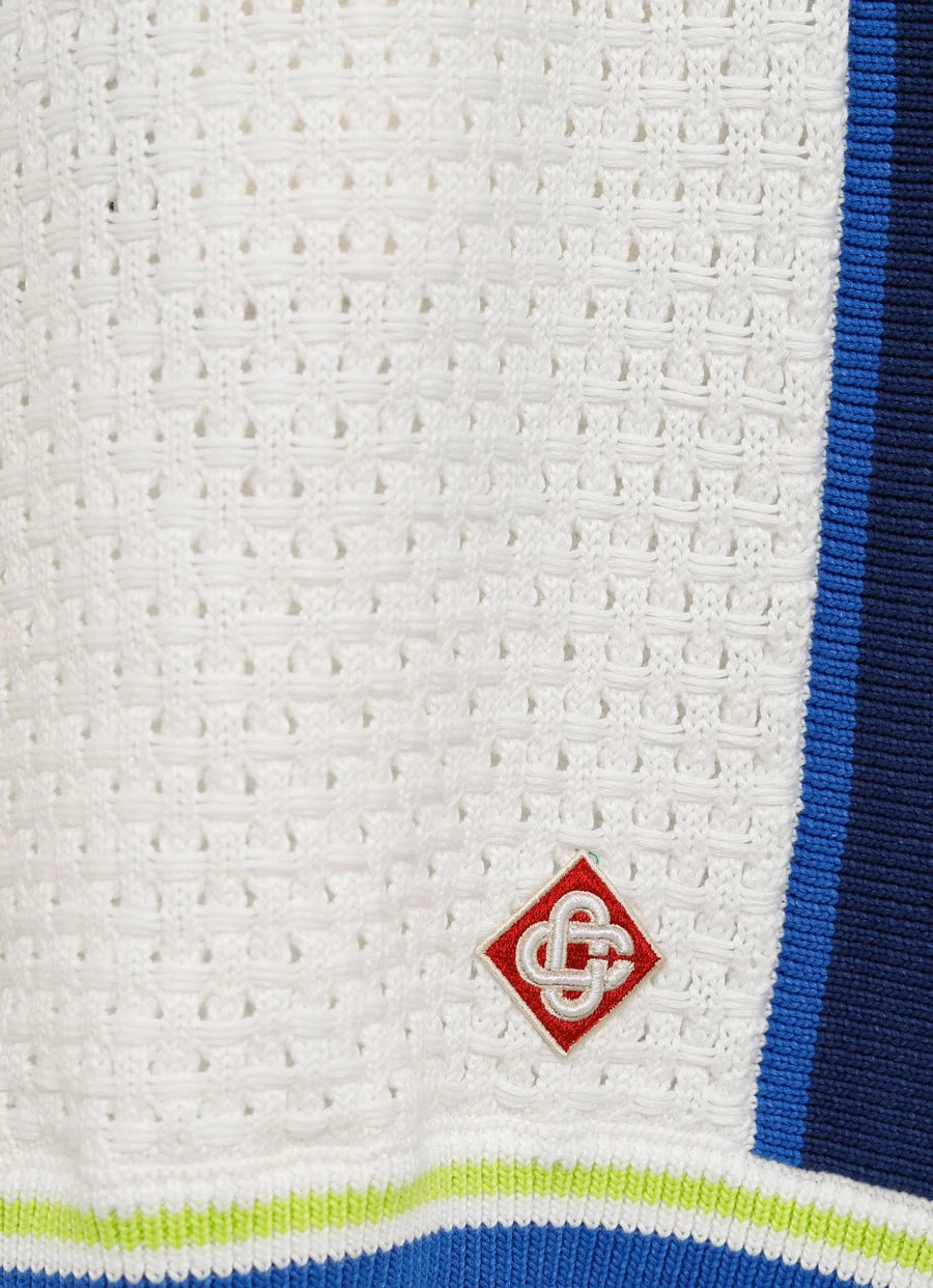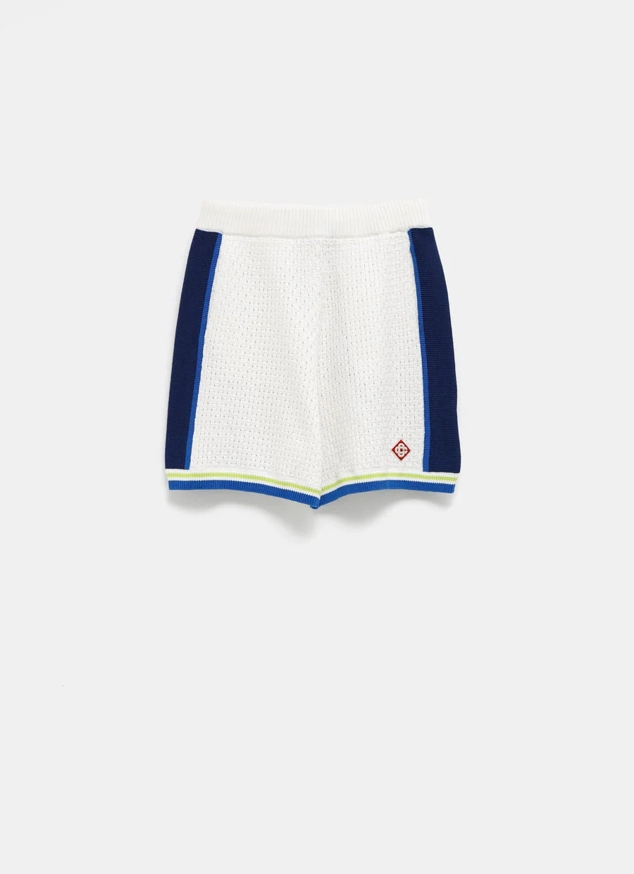 Pantal贸n corto de Casablanca en crochet mezcla de algod贸n. Con cintura con cord贸n, el谩sticos de canal茅, bolsillos laterales y parche con logo. Corte relajado. Talla normal, elige tu talla habitual. Tallaje est谩ndar para hombre.