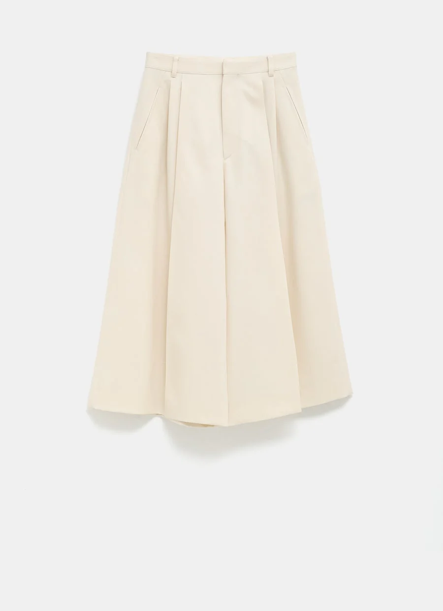 Pantal贸n corto de Celine en tejido de lana diagonal. Con cuatro bolsillos, pliegues frontales, y cierre con cremallera y corchete. Tiro medio, pierna ancha y corte cropped. Hecho en Italia. Talla normal, elige tu talla habitual. Tallaje UE para mujer.