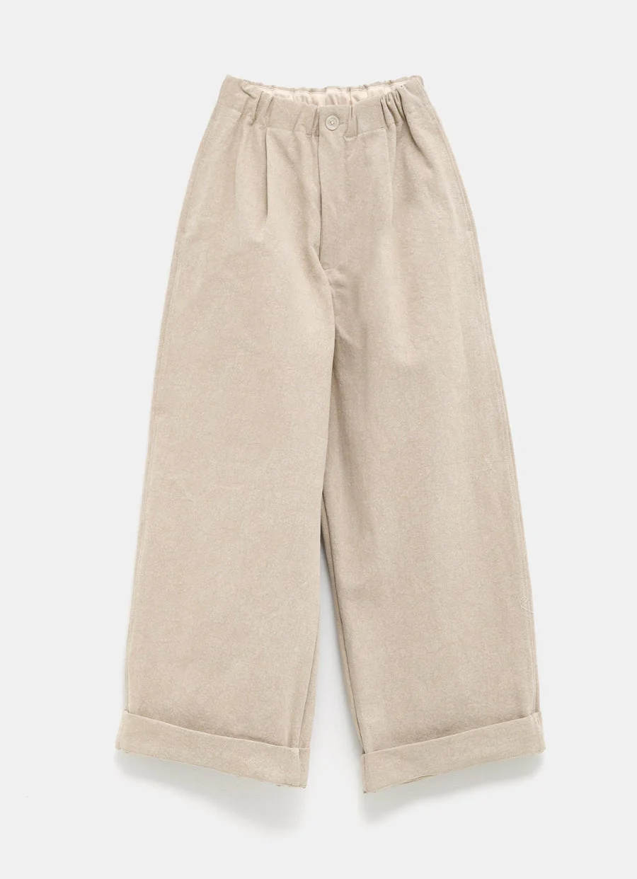 Pantal贸n de Lauren Manoogian de lona de algod贸n tenido a mano con silueta holgada y estructurada. Cierre frontal con bot贸n y cremallera, bolsillos laterales, bolsillo trasero con bot贸n, cintura el谩stica con cord贸n ajustable en el interior, y bajos con dobladillo. Hecho en Per煤. Talla normal, elige tu talla habitual. Tallaje num茅rico para mujer.