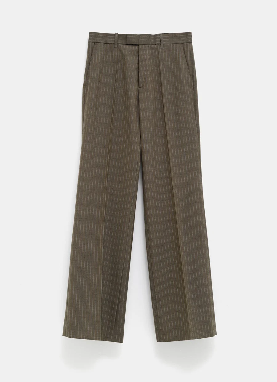 Pantal贸n de sastre de Phoebe Philo en mezcla de lana a rayas con pinzas delanteras, trabillas, bolsillos laterales y dos bolsillos de ribete traseros. Hecho en Italia. Talla normal, elige tu talla habitual. Tallaje UE para mujer.