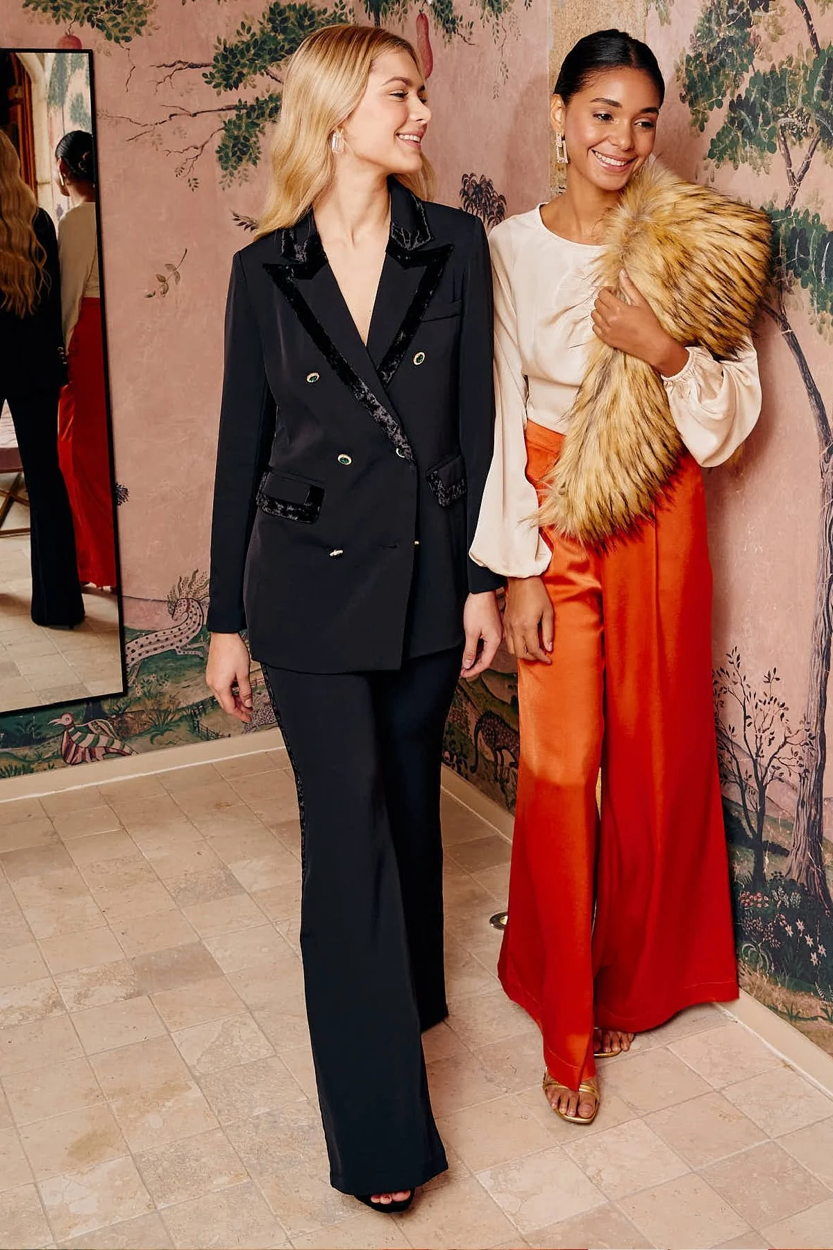 Look: Pantal贸n Didier, Estola Leah II y Pendientes Mina
