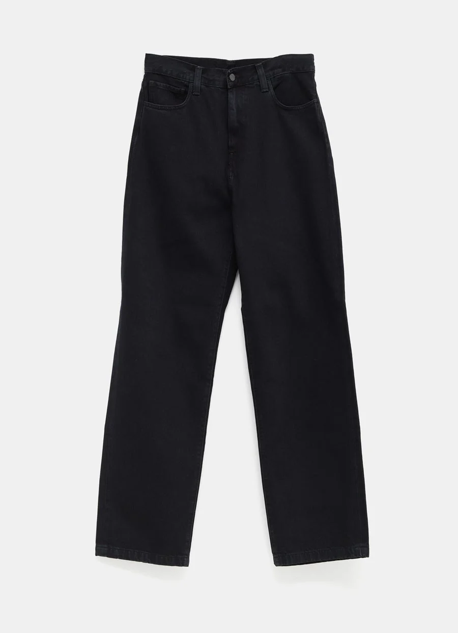 Pantal贸n de Carhartt WIP en denim grueso con lavado a piedra. Corte tapered y holgado, talle regular y costuras de refuerzo en zonas de tensi贸n. Detalle de etiqueta cuadrada y cierre frontal con bot贸n y cremallera. Talla normal, elige tu talla habitual. Tallaje de jeans para hombre.