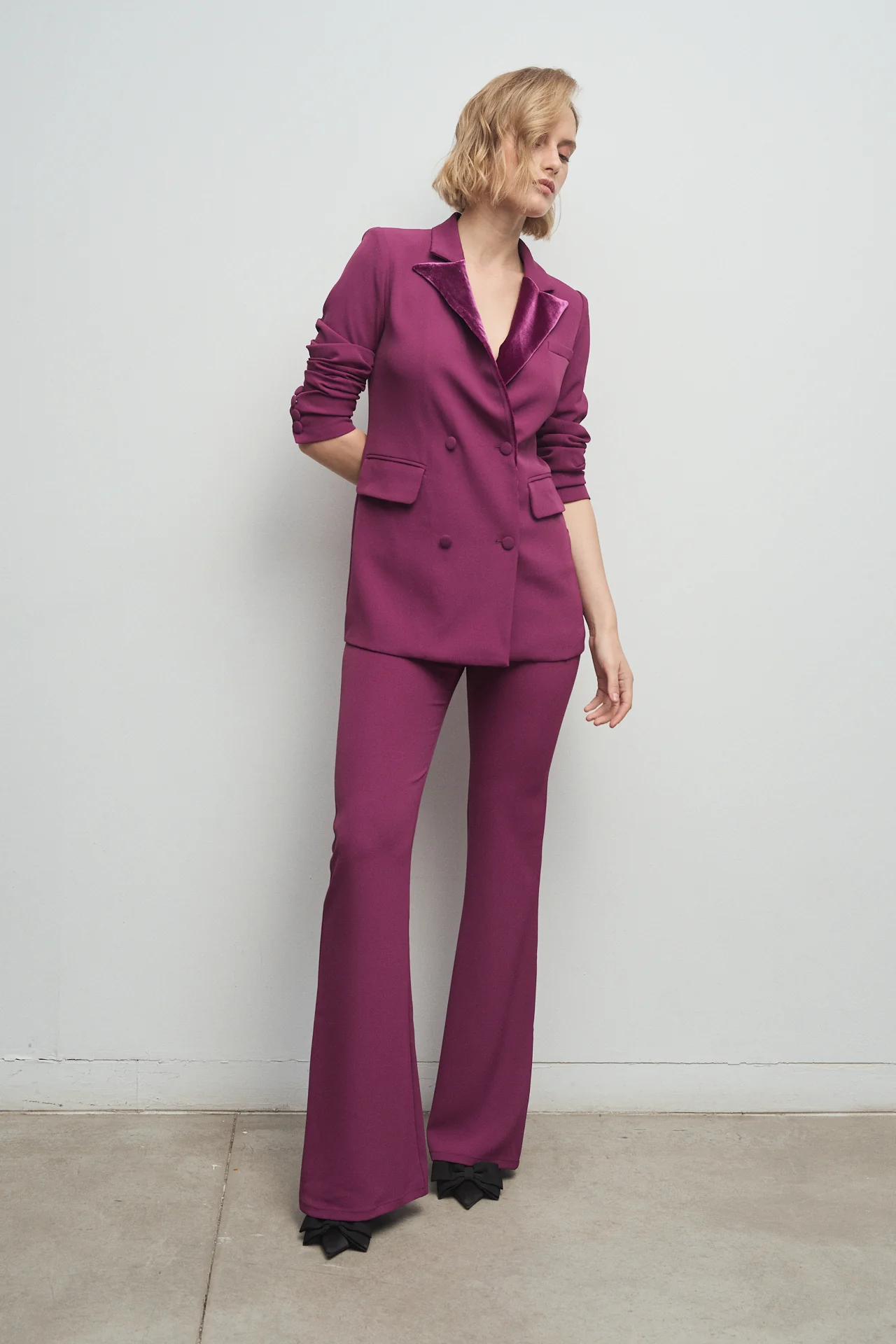 Presentamos los pantalones Lara en color ciruela, con silueta 芦flare禄 que estiliza y alarga tus piernas, combinando elegancia y comodidad.