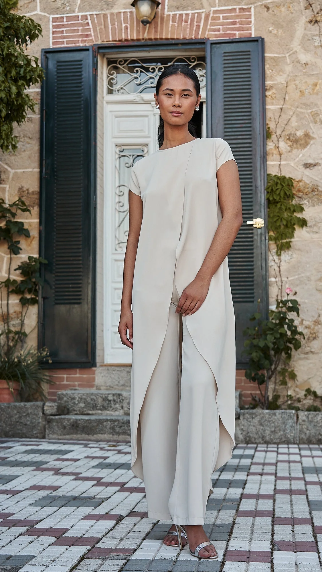 Este pantal贸n de fiesta es la elecci贸n perfecta para completar tu look elegante y sofisticado. Con un dise帽o liso recto y cintura alta, ofrece una silueta estilizada y favorecedora, ideal para eventos como bodas, fiestas y celebraciones especiales.