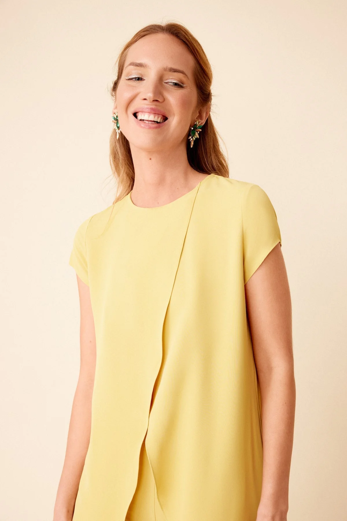 Pantal贸n liso recto de cintura alta con cierre de cremallera invisible en espalda.