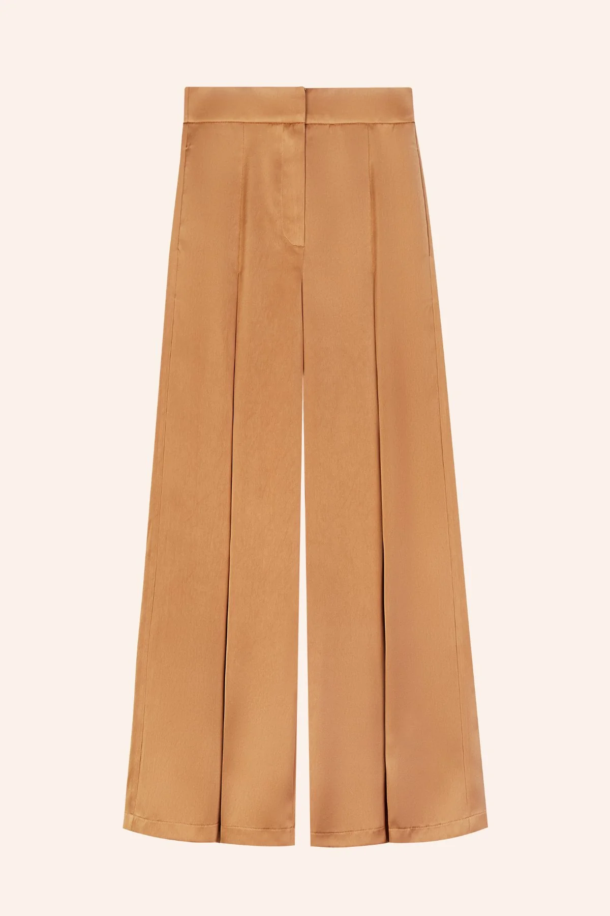 El pantal贸n Mindy regresa esta temporada reinterpretado en un tejido tipo mikado de acabado m谩s sofisticado y lujoso. Su corte culotte de cintura alta estiliza la silueta, aportando un aire moderno y refinado a la vez.