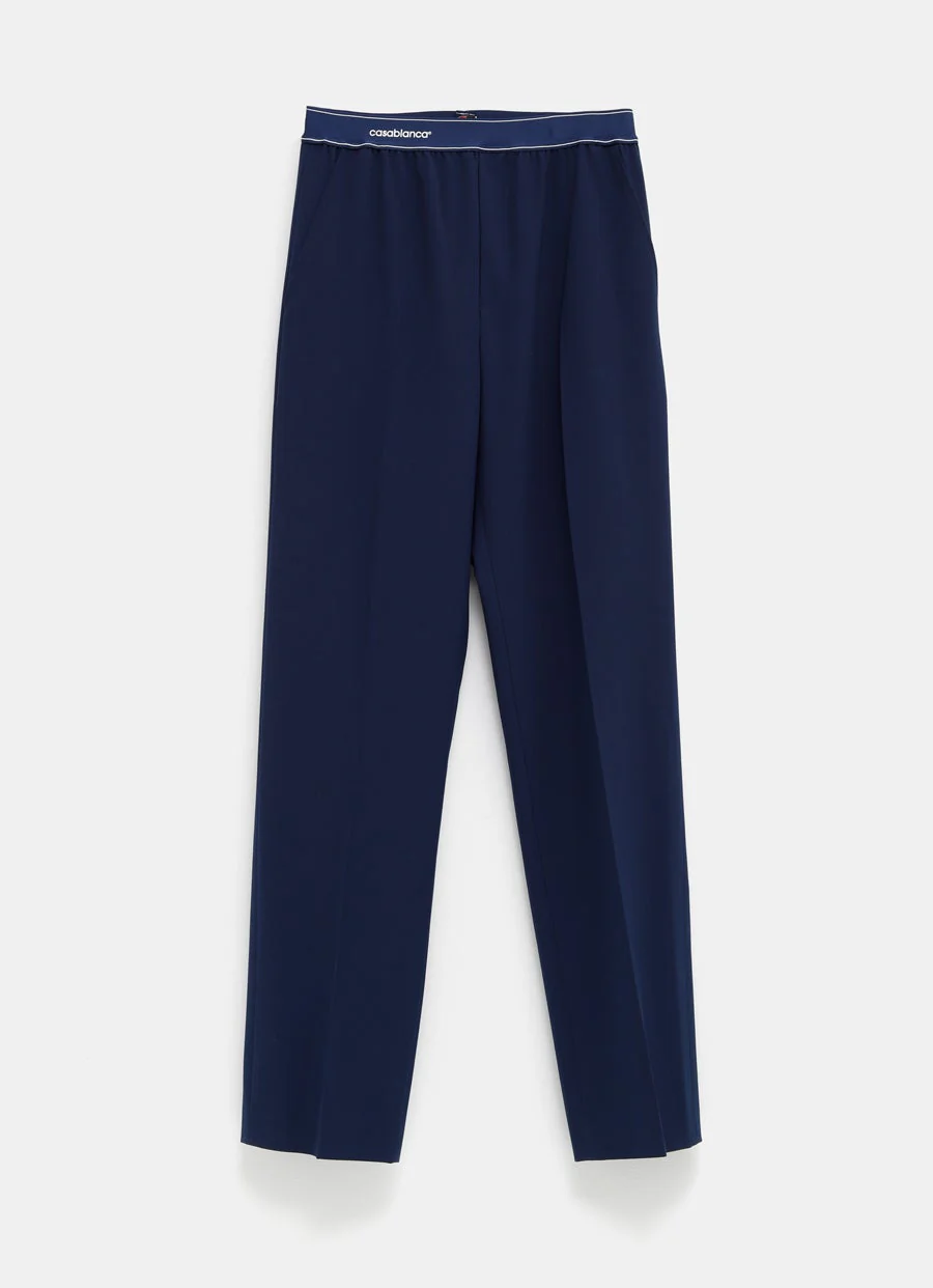 Pantal贸n de Casablanca en tejido mezcla de lana con cintura el谩stica con logo, pliegues planchados y dise帽o de cuatro bolsillos. Hecho en Portugal. Corte recto y relajado. Talla normal, elige tu talla habitual. Tallaje UE para hombre.
