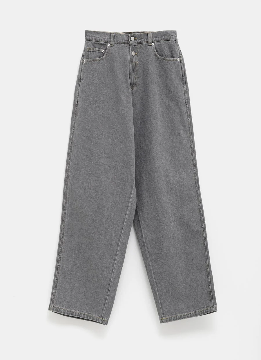 Pantal贸n vaquero de Gimaguas con dise帽o de cinco bolsillos, cierre con cremallera y dos botones, corte oversize, largo por el tobillo y cintura baja. Tallan normal, elige tu talla habitual. Tallaje franc茅s para mujer.