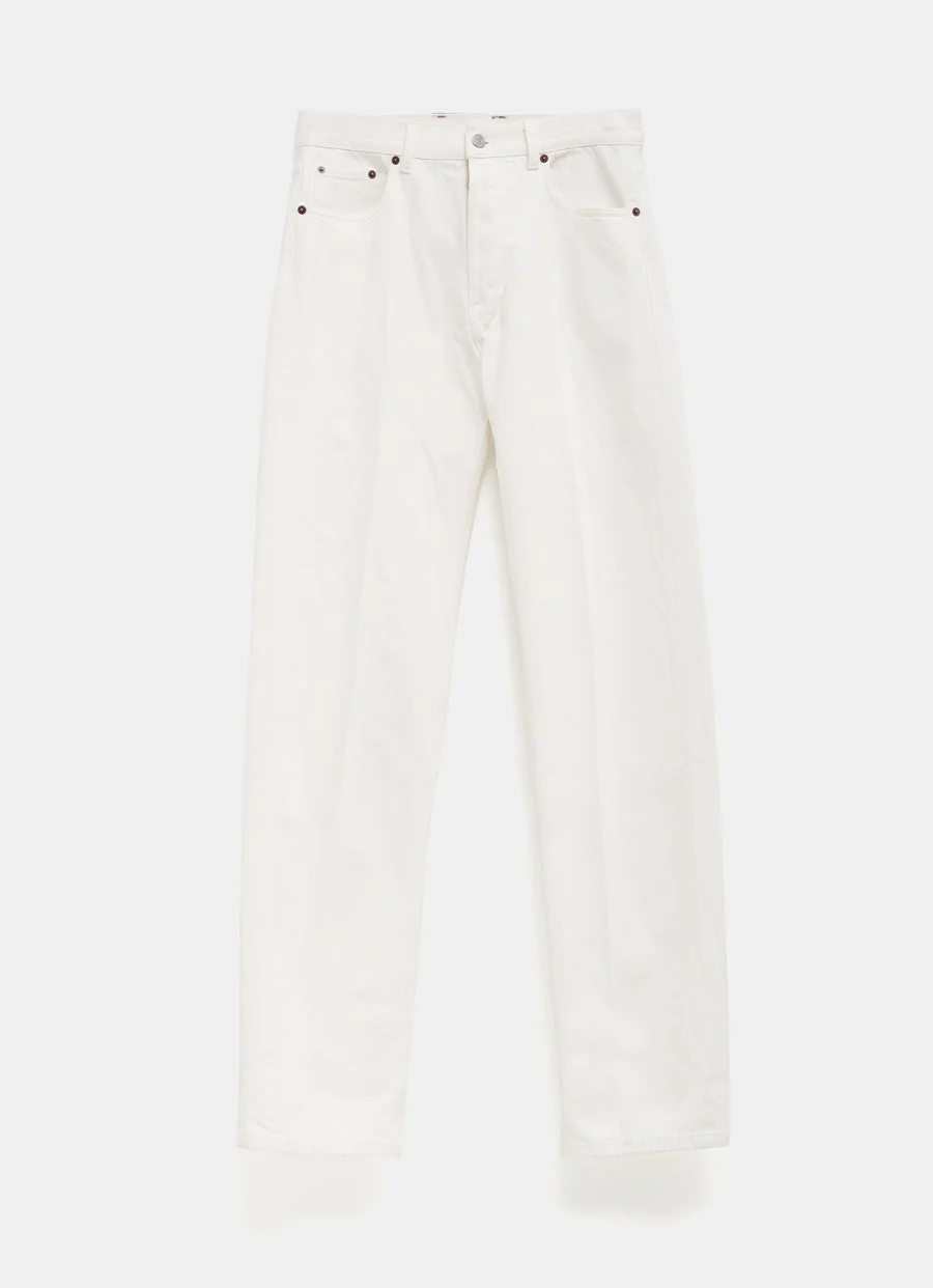 Pantal贸n vaquero de Celine de tiro medio en denim de algod贸n, con pernera recta, cinco bolsillos, parche de Celine Paris en la parte trasera de la cintura y cierre de botones. Corte cl谩sico. Hecho en Italia. Talla normal, elige tu talla habitual. Tallaje de vaqueros para hombre.