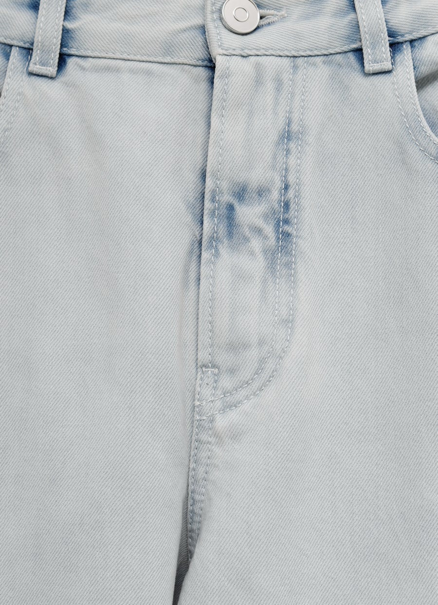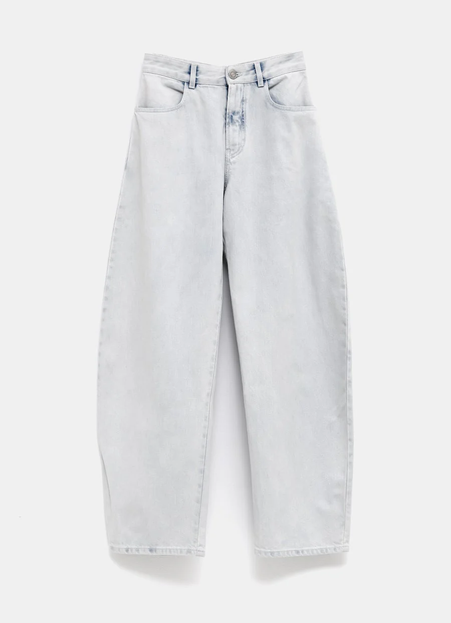Vaquero de Ala茂a en denim claro con talle bajo, cierre de botones y pespuntes en contraste. Corte curvo y ancho. Hechos en Italia. Talla normal, elige tu talla habitual. Tallaje jeans franc茅s para mujer.