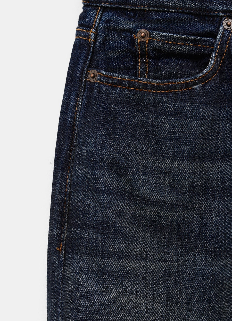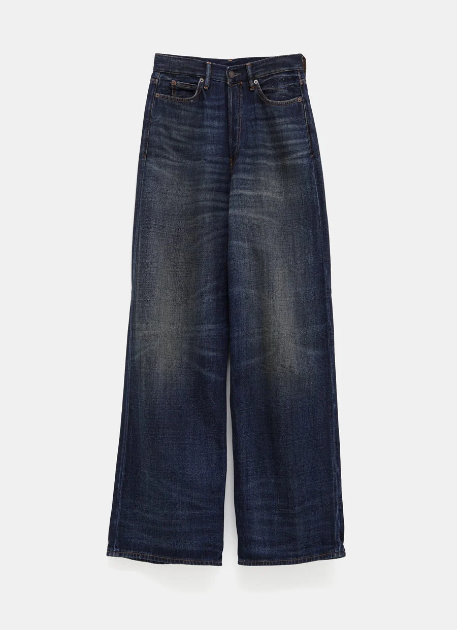Vaqueros unisex de Acne Studios en denim r铆gido de algod贸n con lavado azul oscuro. De corte holgado con cintura baja, perneras muy anchas y largo extra. Talla normal, elige tu talla habitual. Talla est谩ndar unisex de Acne Studios.