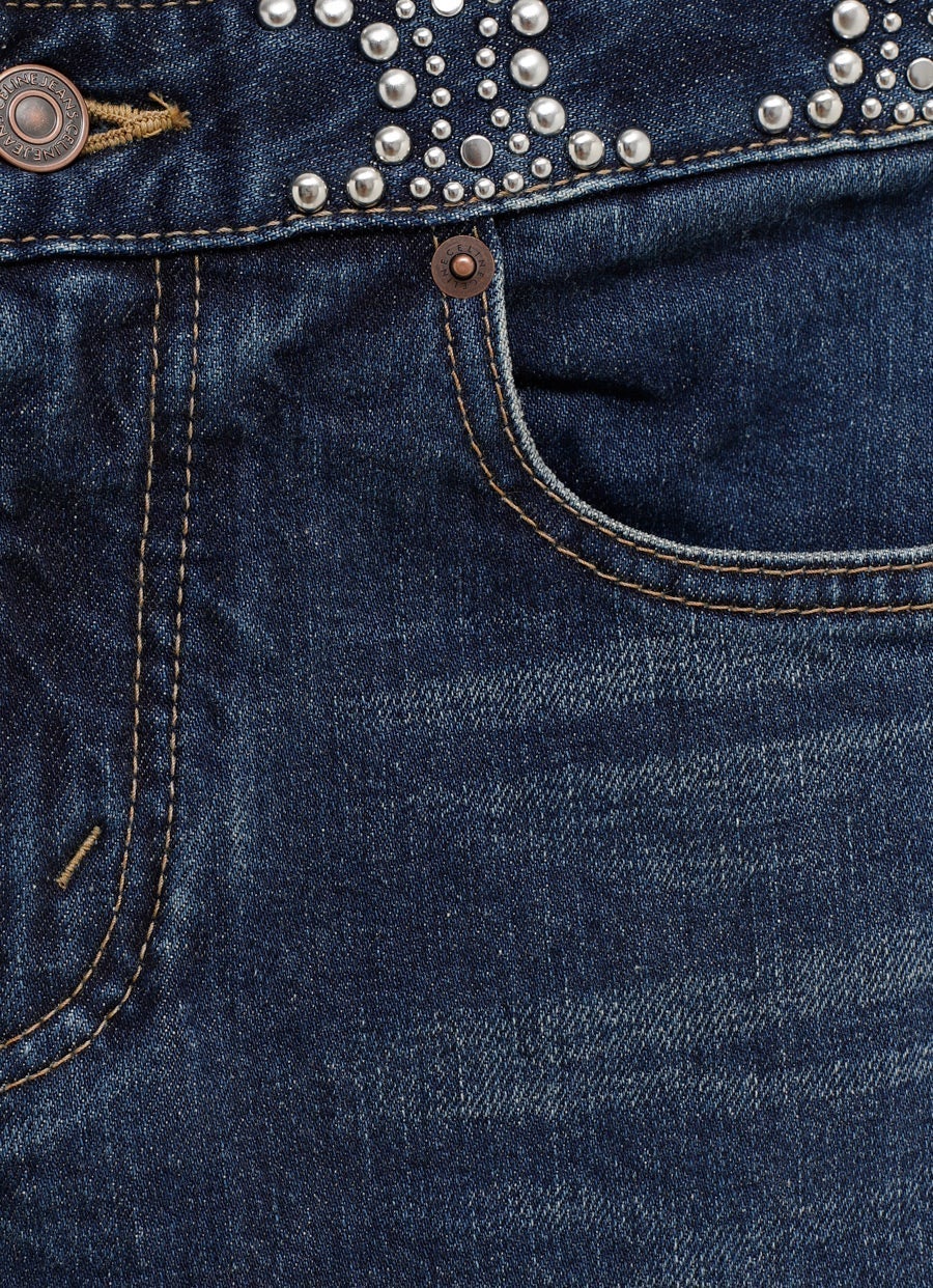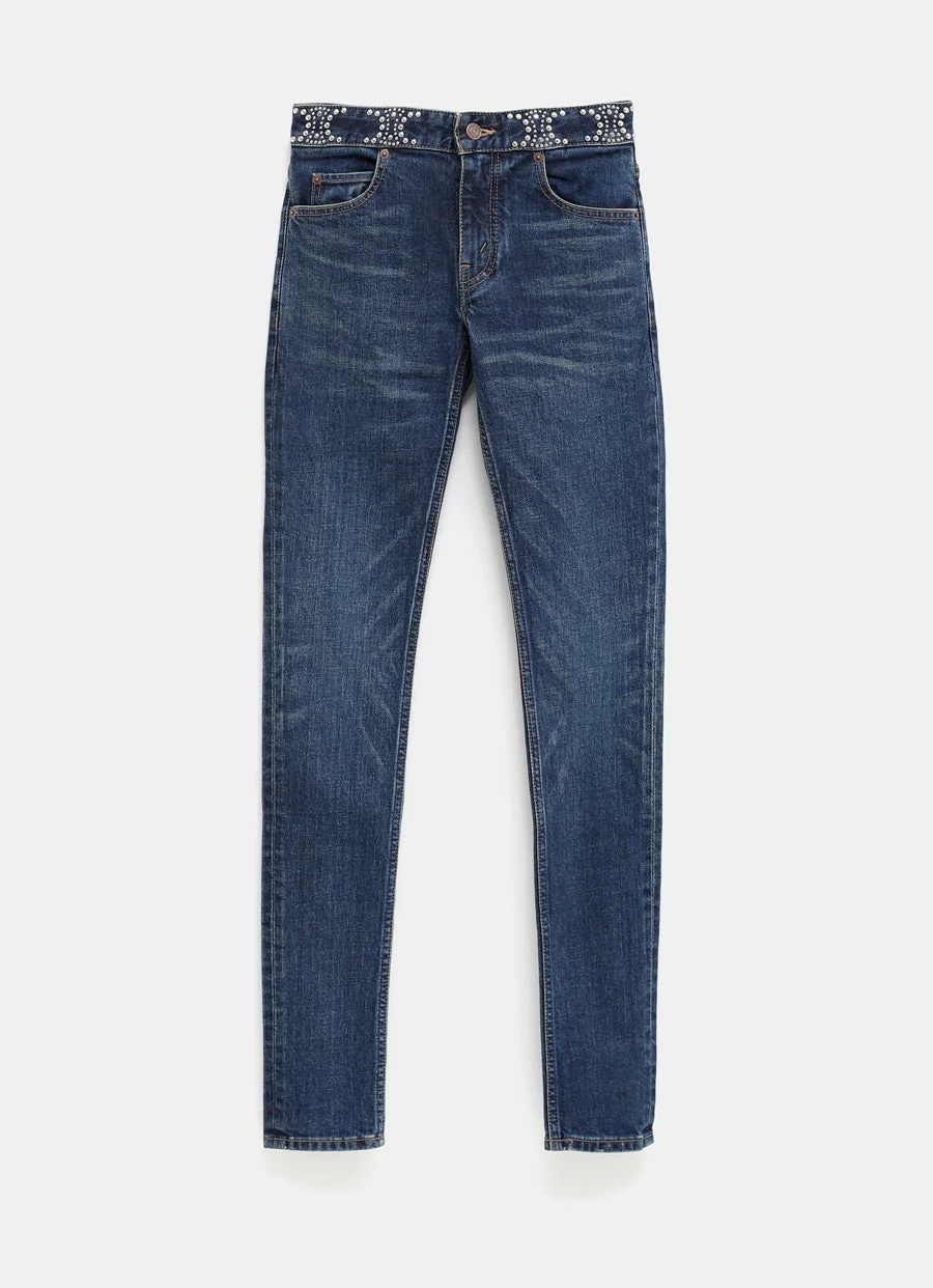 Pantalón vaquero de Celine en denim desgastado con lavado clean Dark Union. De corte ajustado y talle bajo. Cinco bolsillos y parche en la parte trasera. Sobrepuestos metálicos Triomphe en la cintura. Cierre con cremallera y botón. Hechos en japón. Tallan normal, elige tu talla habitual. Tallaje jeans de mujer.