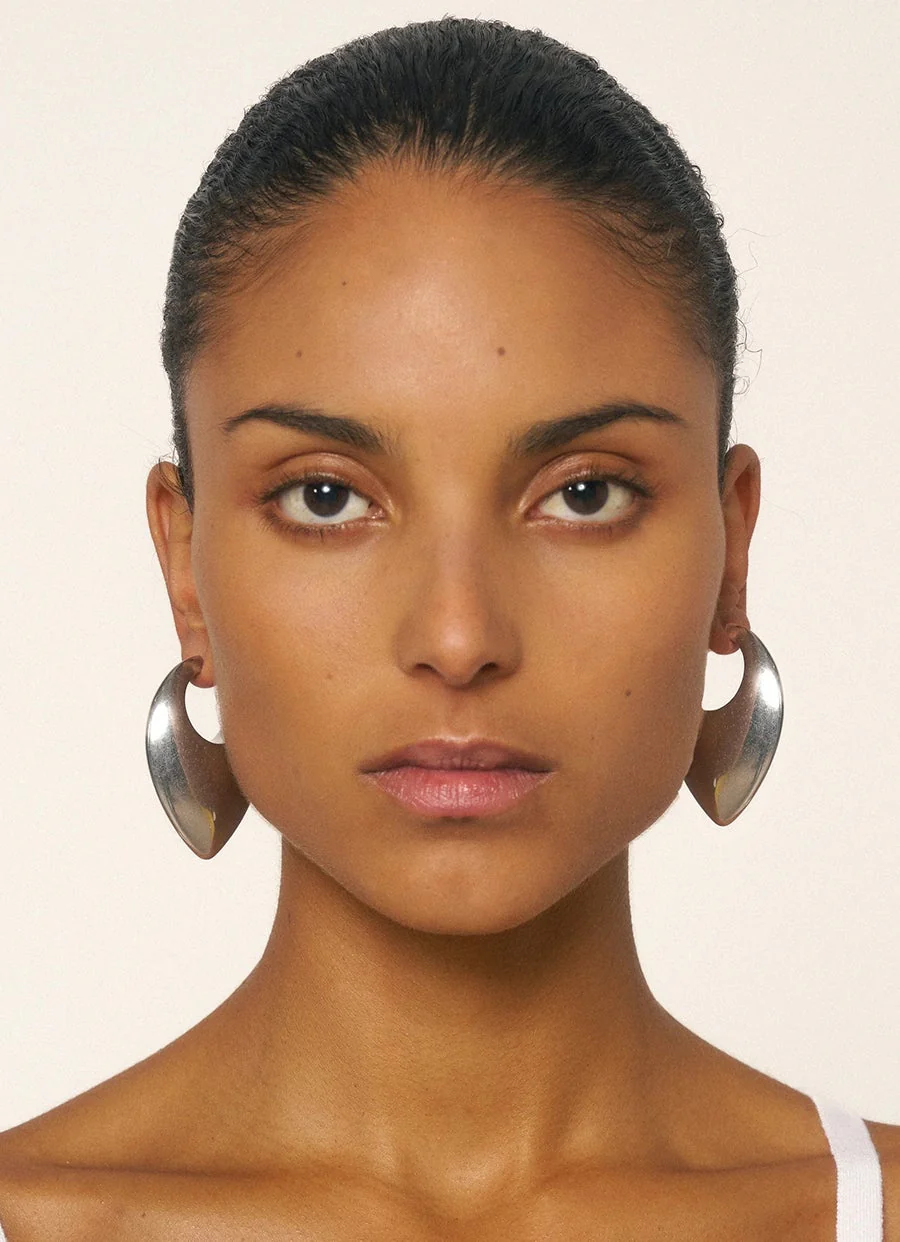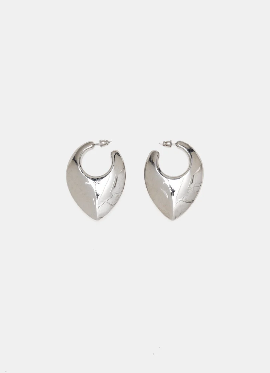 Par de pendientes de Panconesi de cobre chapado en rodio. con diseño de anilla y cierre de pin. Hechos en Italia. Tamaño: 5.5 x 4 cm. Peso: 16 gramos aprox.
