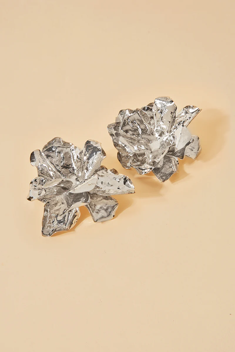 Pendientes plateados con forma de flor.