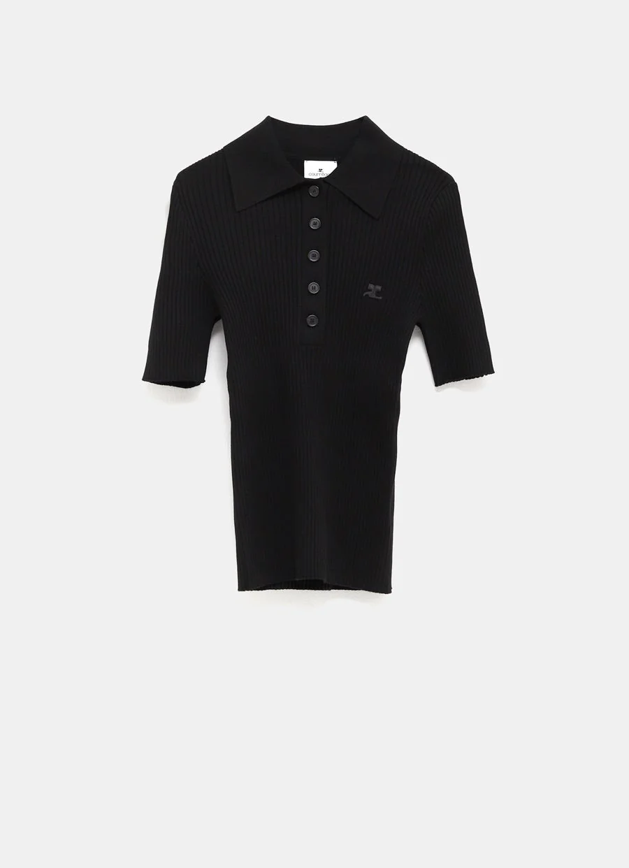 Polo de Courrèges en punto de canalé con manga corta, cuello con solapas, botones y logo AC en el pecho. Corte ajustado. Talla normal, escoge tu talla habitual. Tallaje estándar.