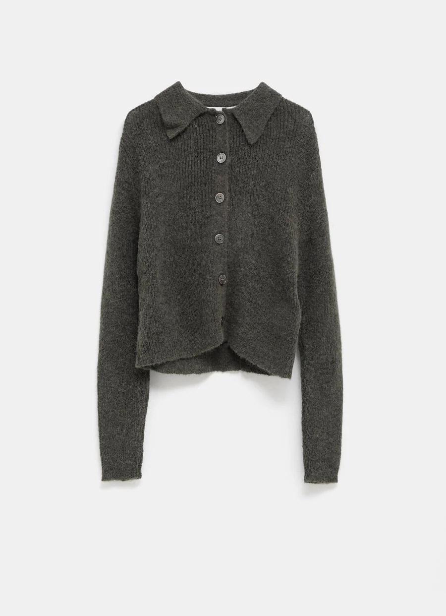 Polo de Our Legacy en punto mezcla de alpaca con cierre de botones y manga extralarga. Corte cropped. Talla normal, escoge tu talla habitual. Tallaje UE para mujer.