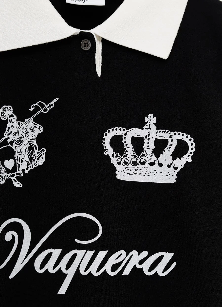 Polo de Vaquera con cuello en contraste y estampado frontal. Corte slim. Hecho en Italia. Talla normal, elige tu talla habitual. Tallaje estándar para mujer.