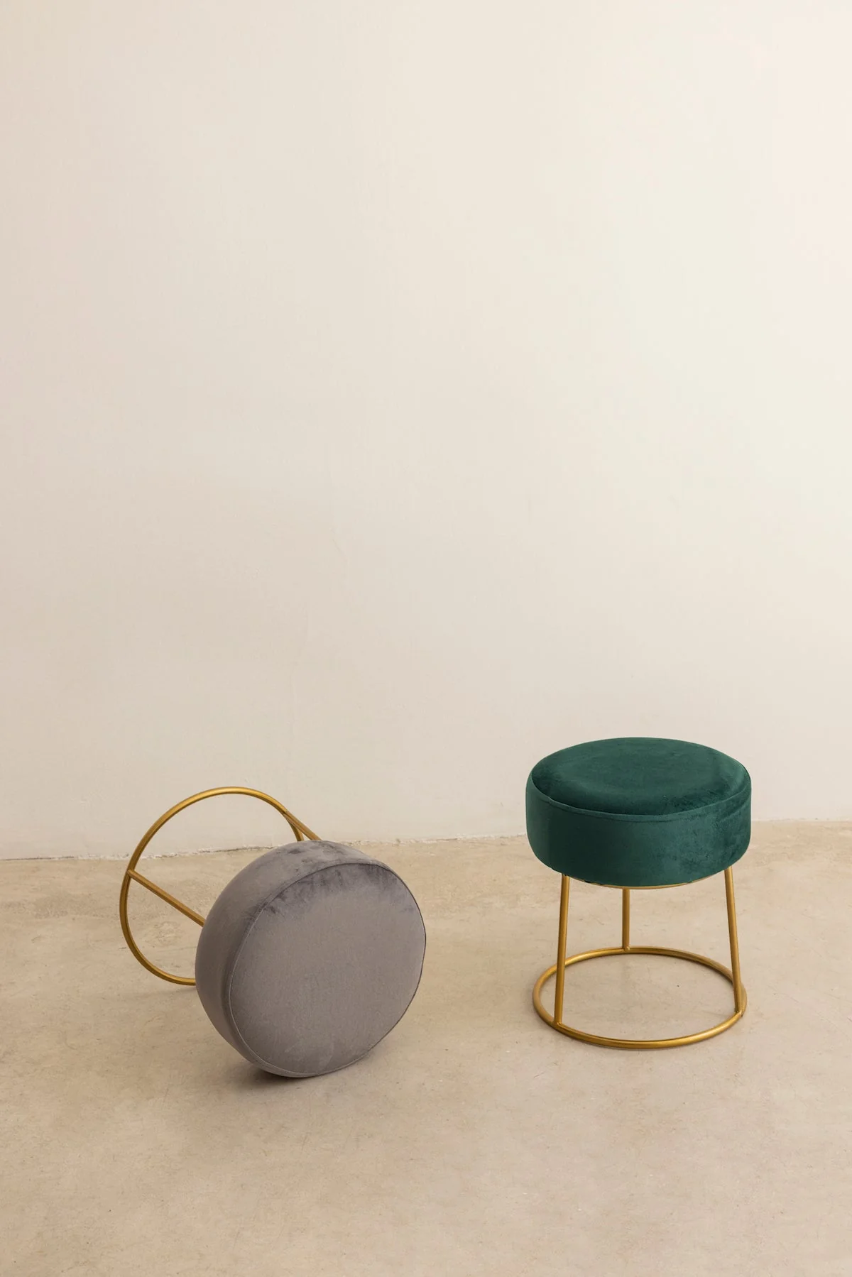 Puf realizado en terciopelo y un elegante estructura dorada.