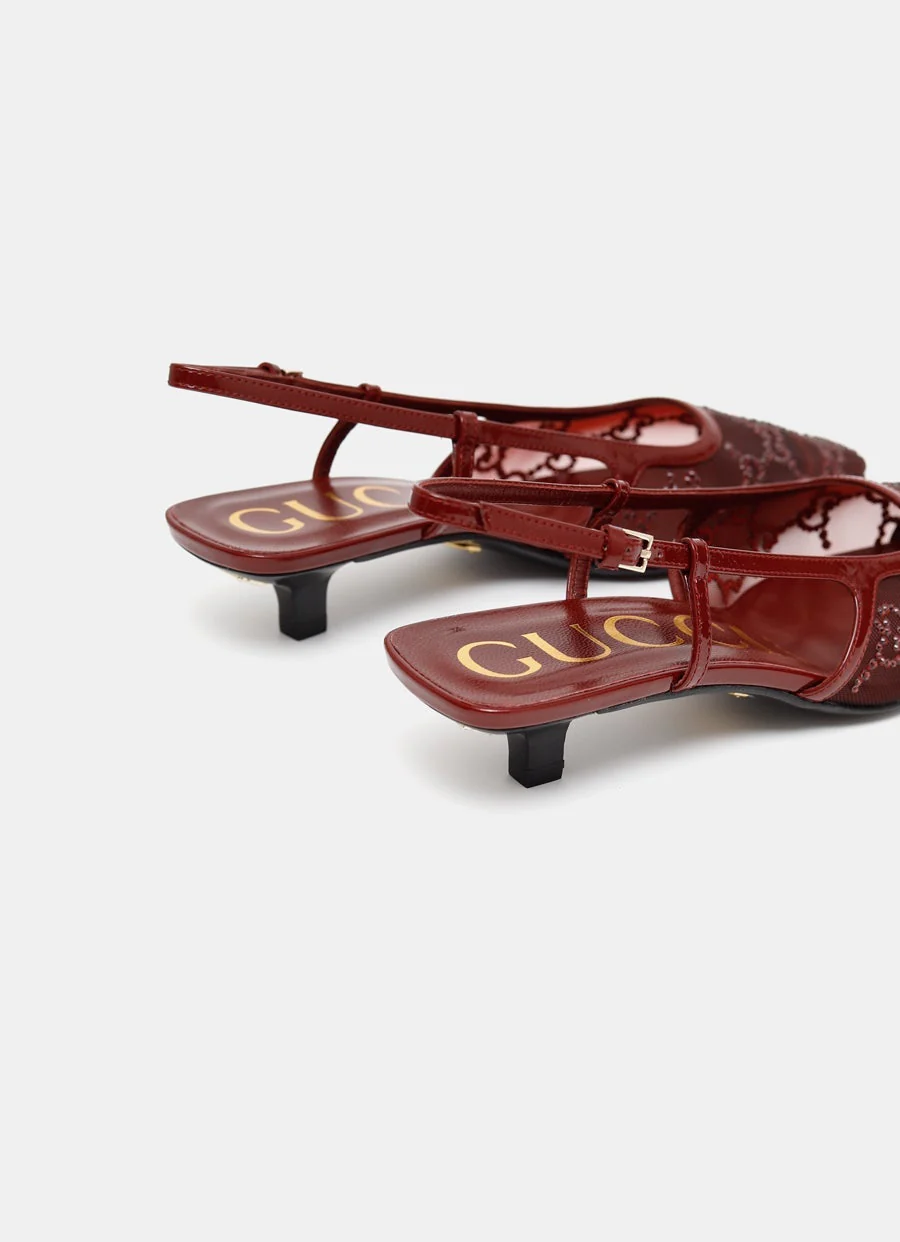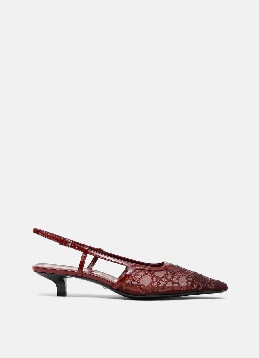 Zapato de tacón de Gucci en tejido de red con cristales GG, puntera afilada, cierre tipo slingback con hebilla dorada, suela de piel y tacón bajo de 3.5 cm. Hecho en Italia. Tallaje normal, elige tu talla habitual. Tallaje italiano.