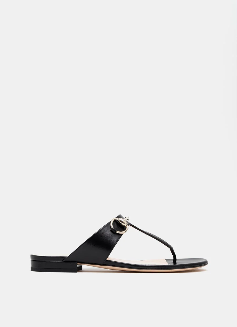 Sandalia de Gucci en piel granulada con tira con sujeción al pulgar, detalle Horsebit de metal, plantilla acolchada y suela plana. Hecha en Italia. Talla normal, elige tu talla habitual. Tallaje italiano para mujer.