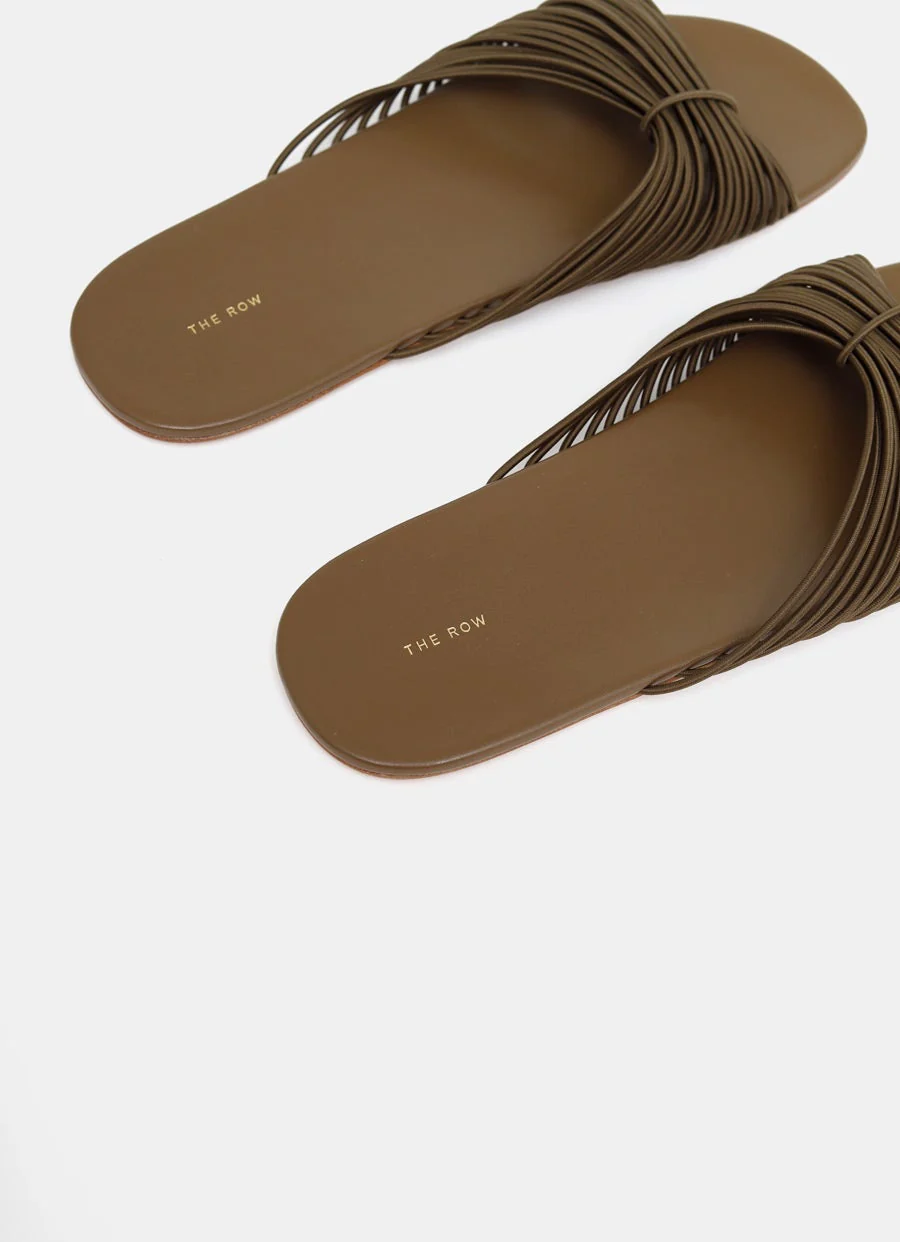 Sandalias tipo chancla de The Row de piel ligera con tiras el谩sticas en la puntera y suela flexible de piel. Suela de piel. Hecho en Italia. Talla normal, elige tu talla habitual. Tallaje UE para mujer.