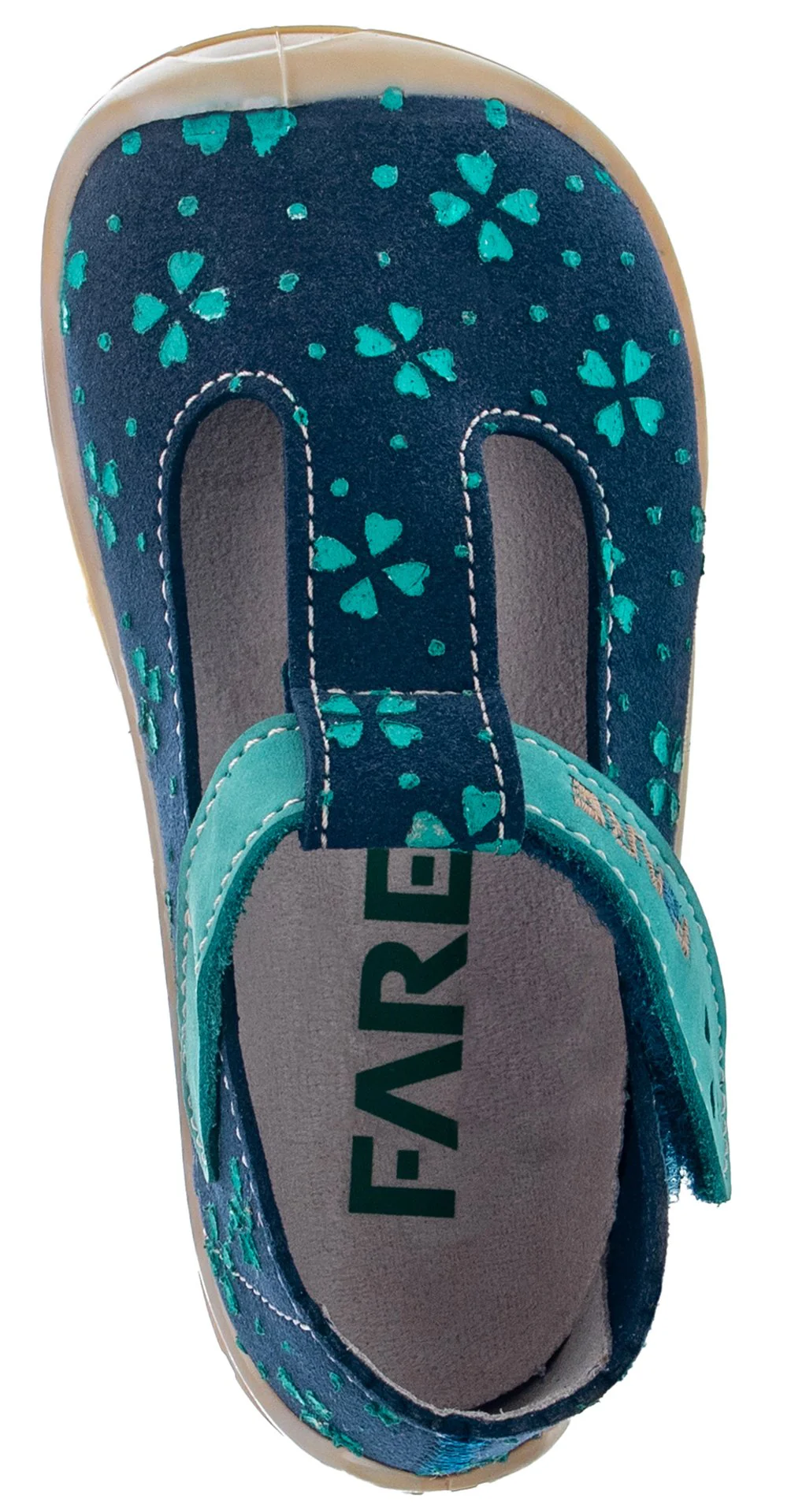 La plantilla cosida en el interior promueve una pisada natural y flexible, mientras que la suela de caucho termoplástico (TPR) ofrece una flexibilidad superior en todas direcciones, adaptándose al movimiento del pie sin restricciones. Como todo modelo FARE BARE, estas sandalias brindan amplio espacio en la zona de los dedos, favoreciendo el desarrollo anatómico del pie infantil.