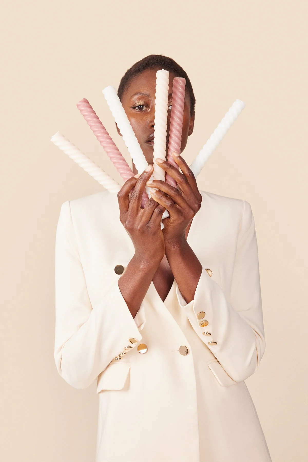Set de 2 velas estilo vintage en color crudo , crema y color rosa palo.