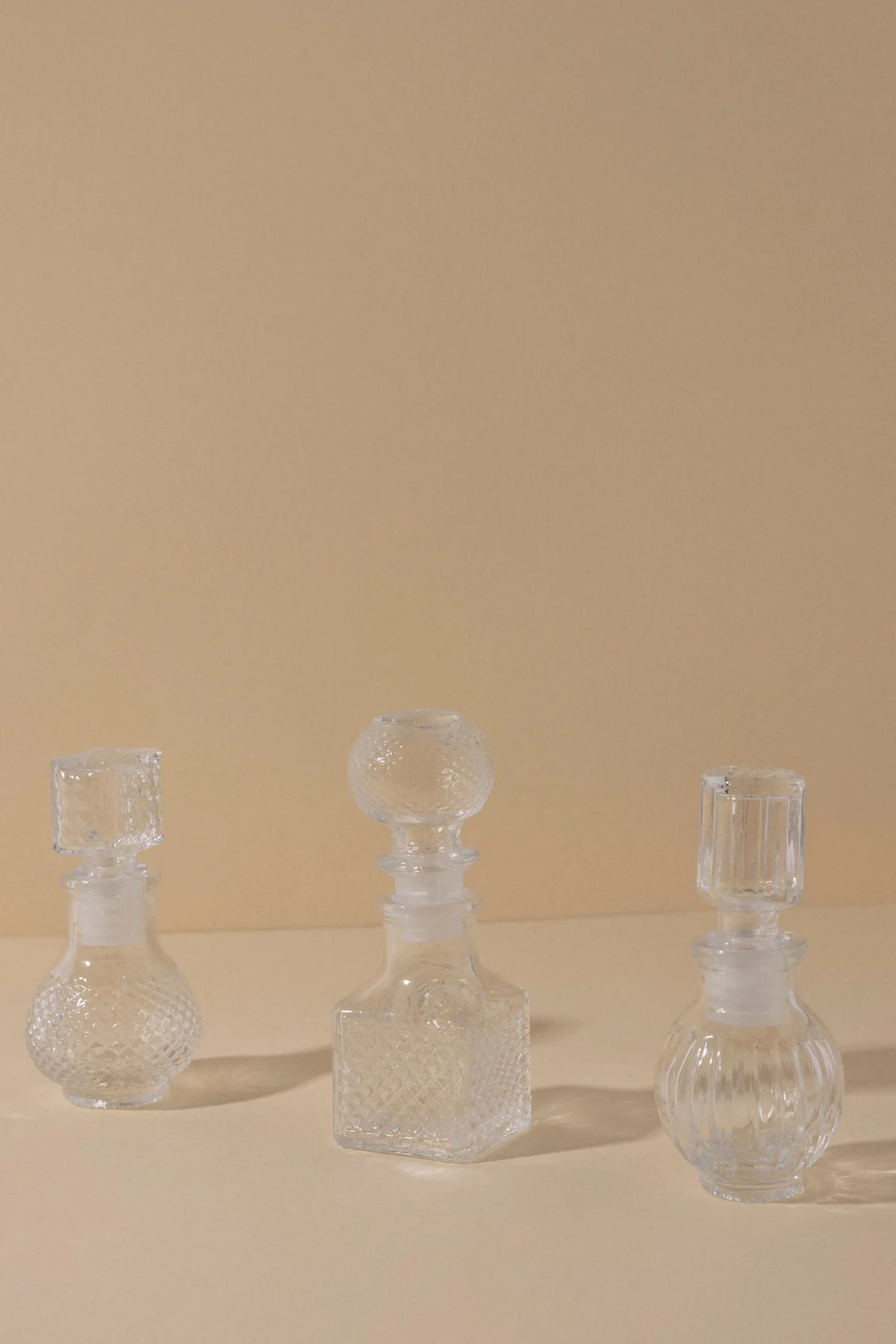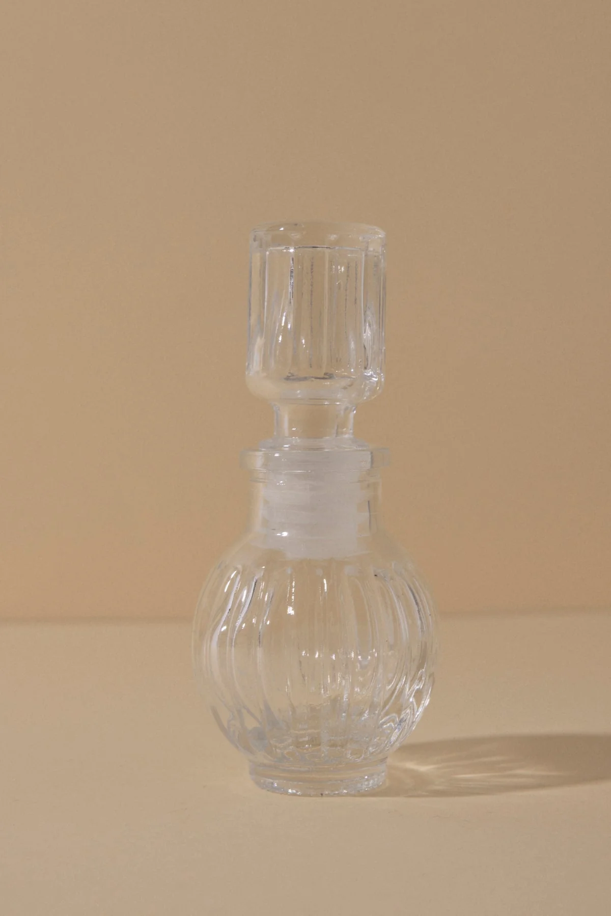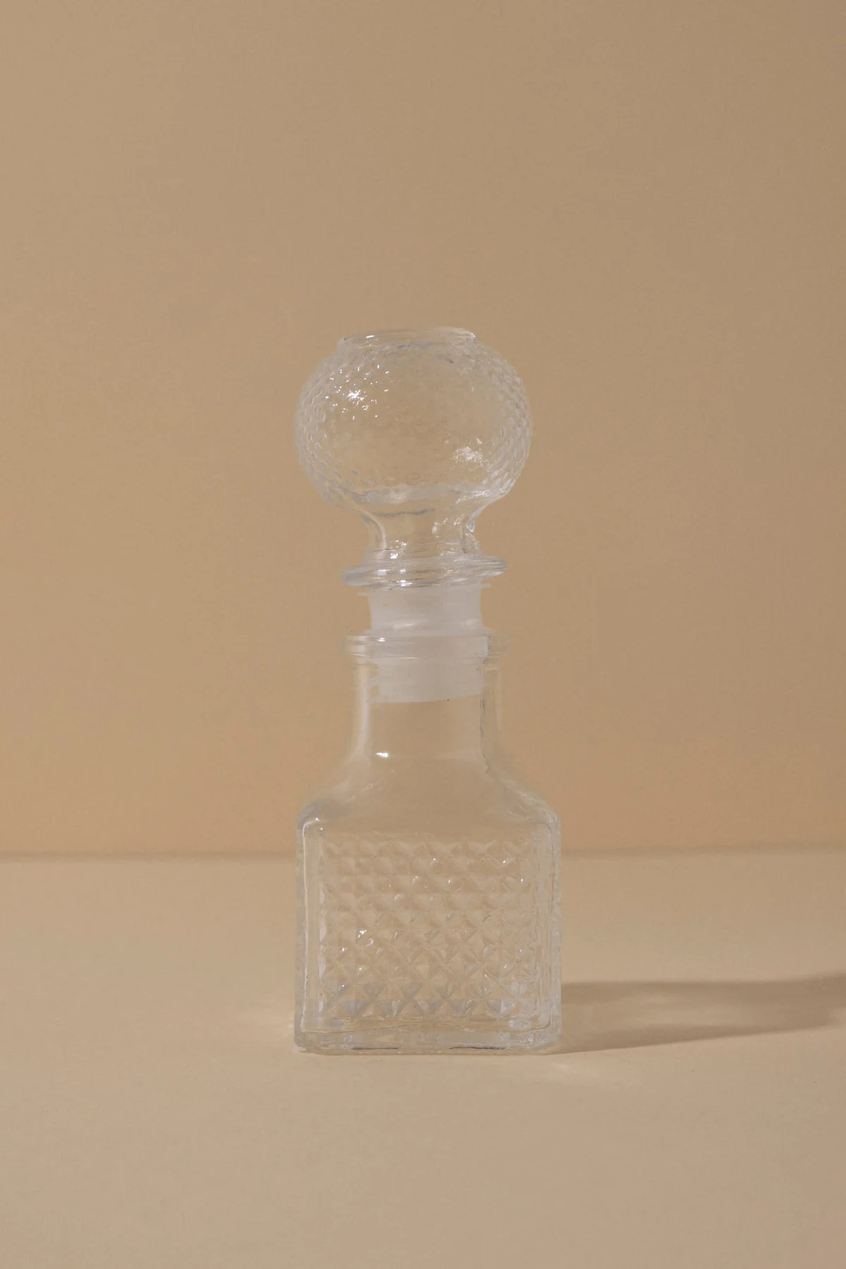Botella con tap贸n en vidrio tallado en tama帽o mini.