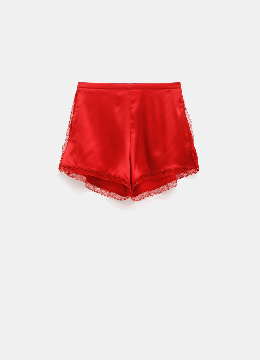 Pantal贸n corto de Dries Van Noten en mezcla de seda con remate de encaje, cintura el谩stica y talle medio. Corte ajustado y largo mini. Talla normal, elige tu talla habitual. Tallaje franc茅s para mujer.