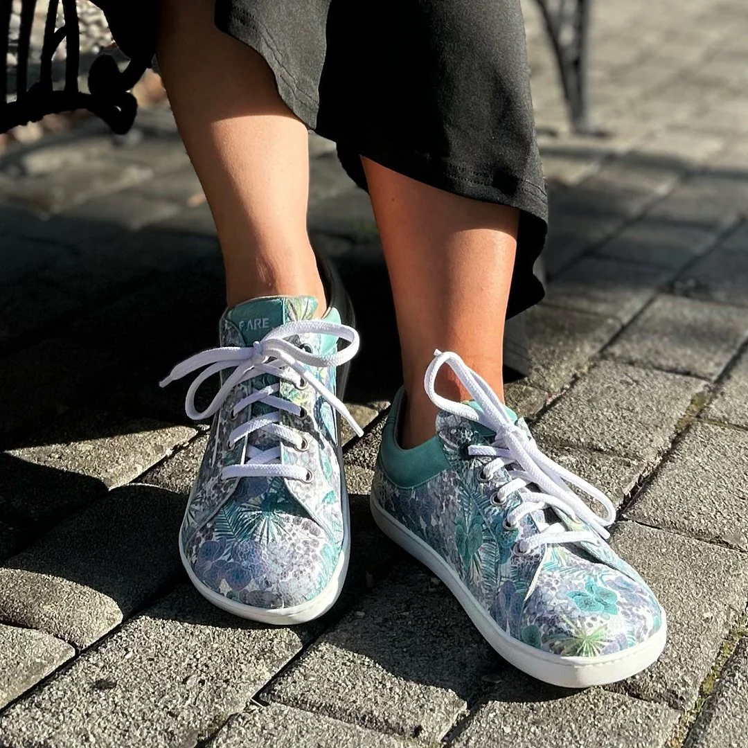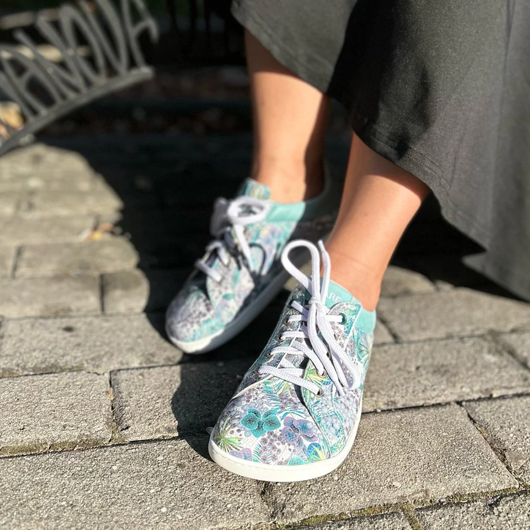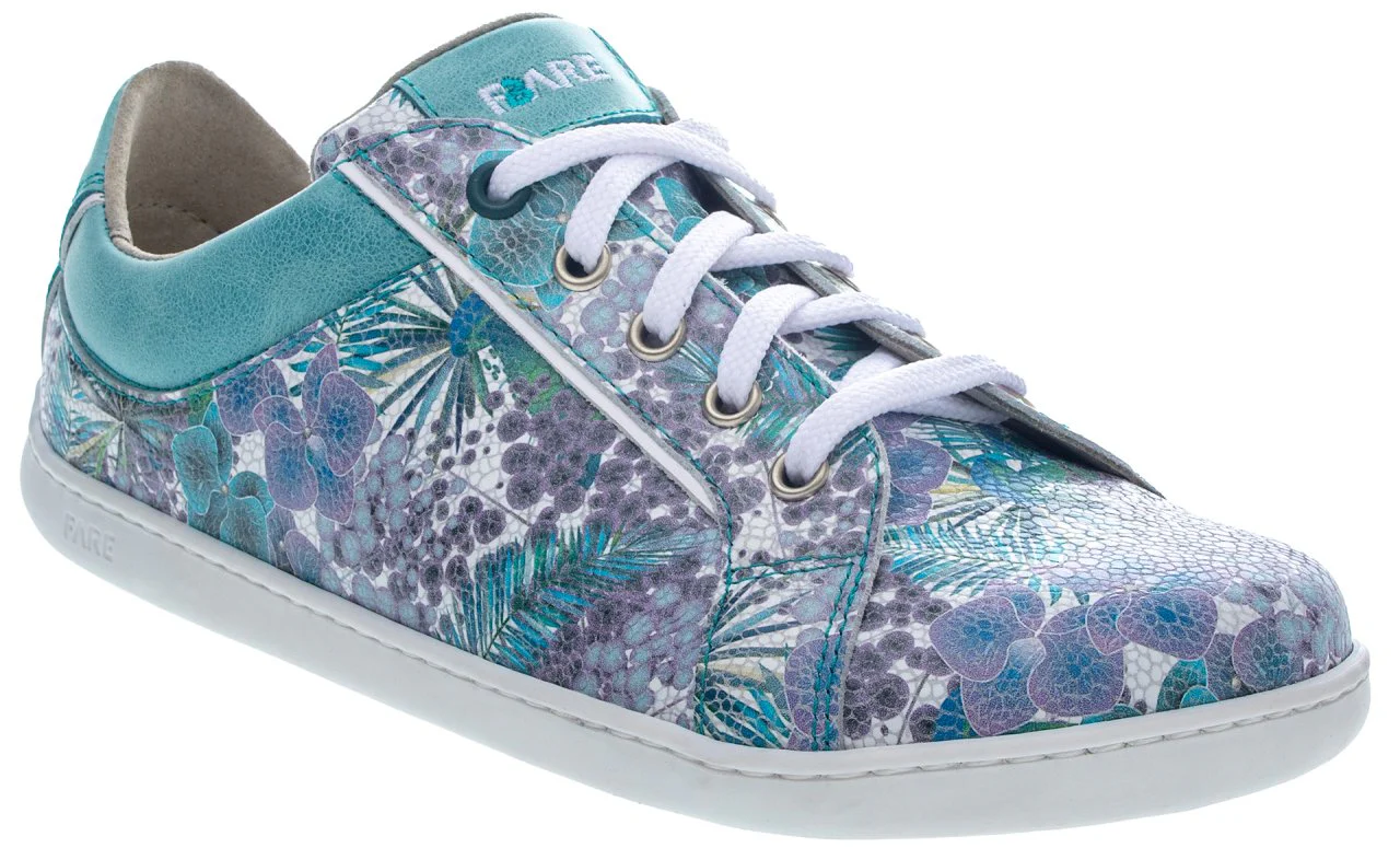 Los Sneakers Elegant Queroseno de Fare Bare son zapatillas barefoot de caña baja, perfectas para todas las estaciones. Fabricadas en piel natural y con forro textil absorbente, ofrecen durabilidad y confort durante todo el día. Con un estampado de flores.