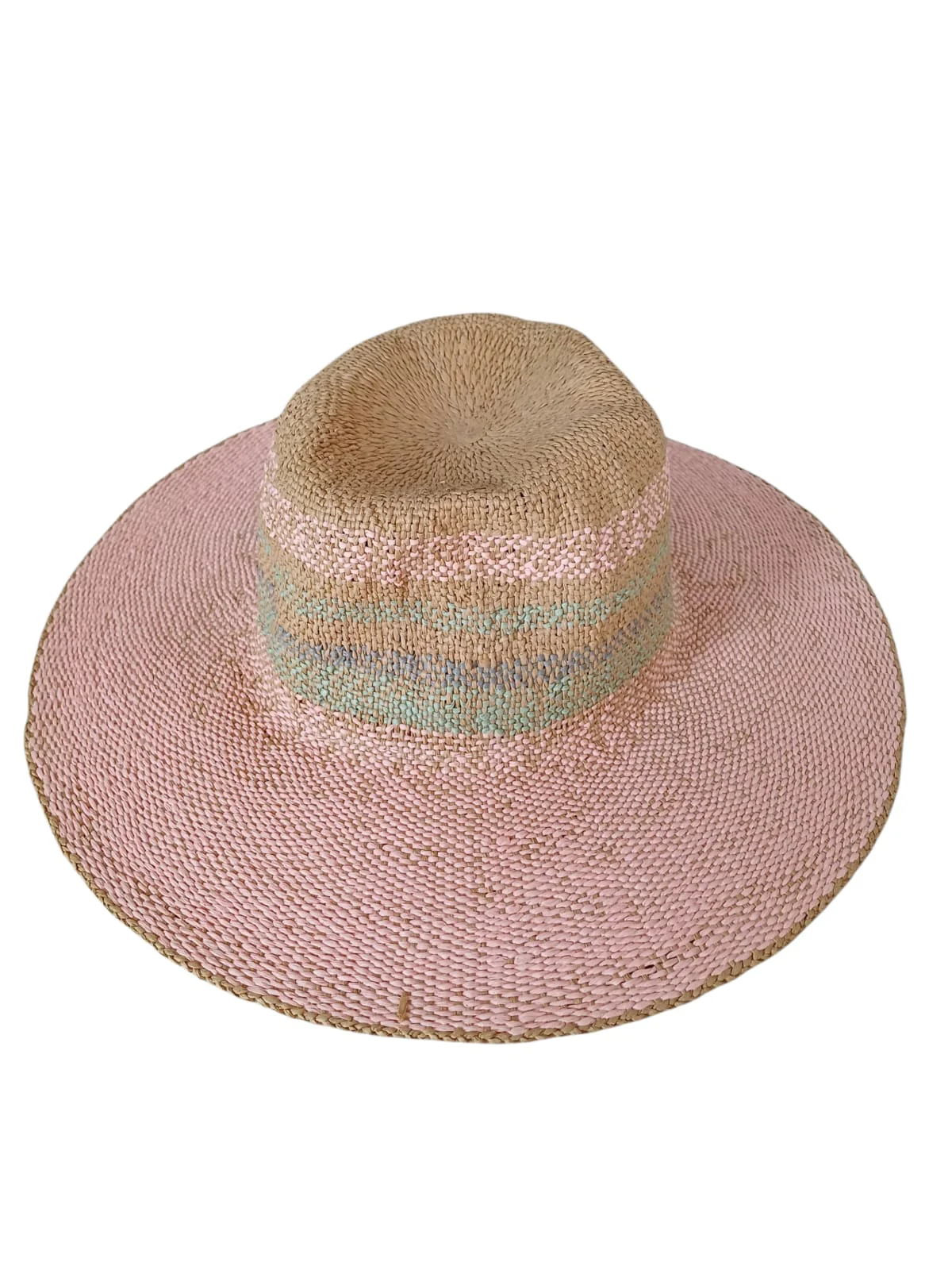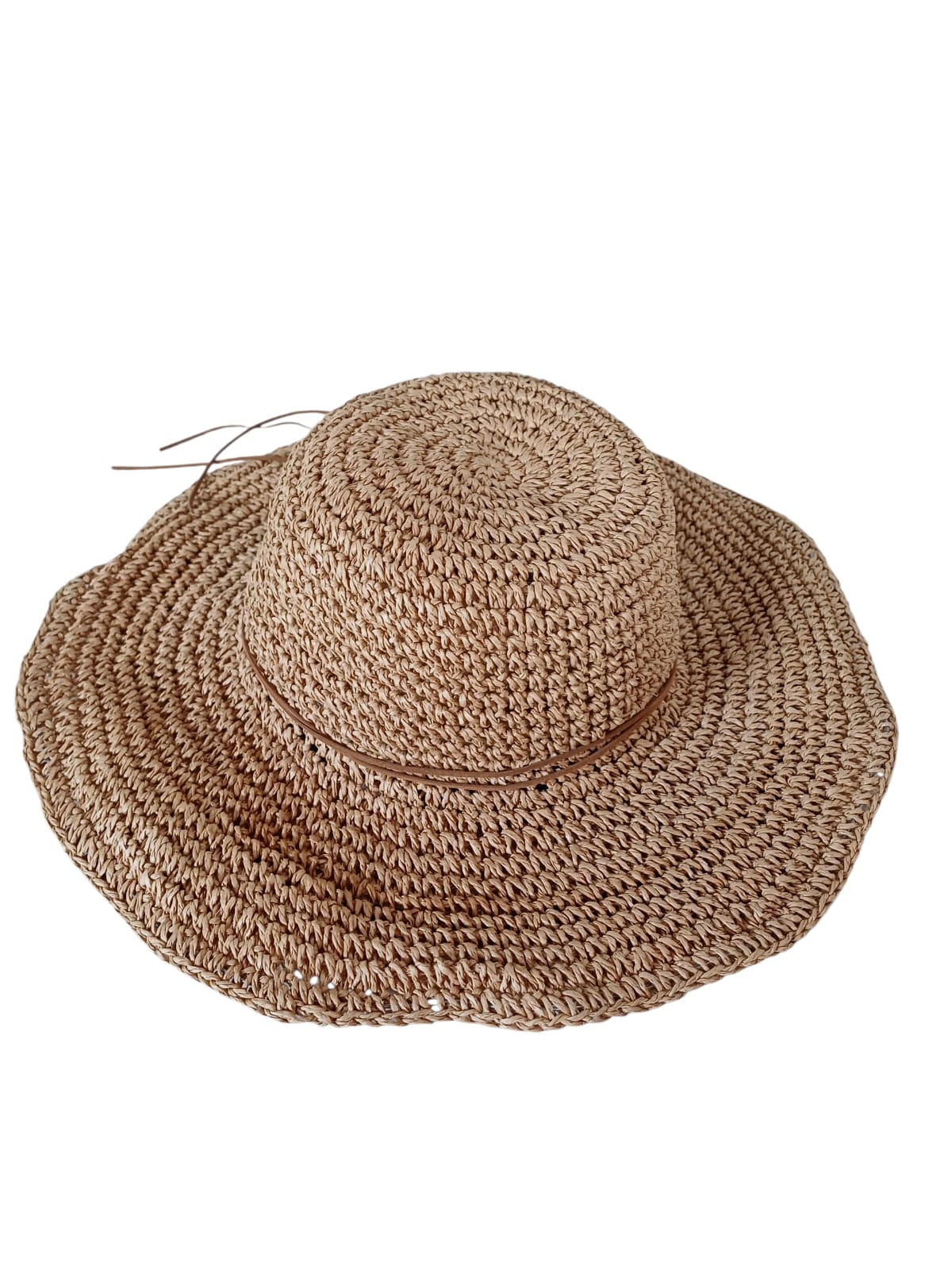 Sombrero beige tejido estilo vaquero con detalle cinta.