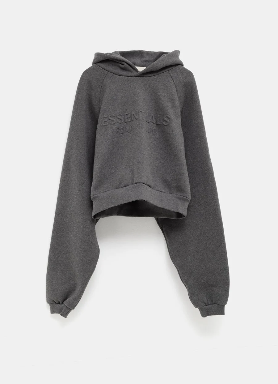 Sudadera de The Essentials en felpa gruesa con logo en relieve en el frente, doble capa en la capucha, ribetes de canalé, bolsillos laterales, mangas raglán y etiqueta con el logo. Corte cropped. Talla normal, elige tu talla habitual. Tallaje estándar para mujer.