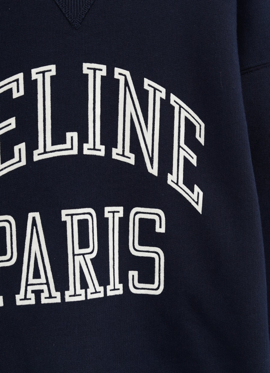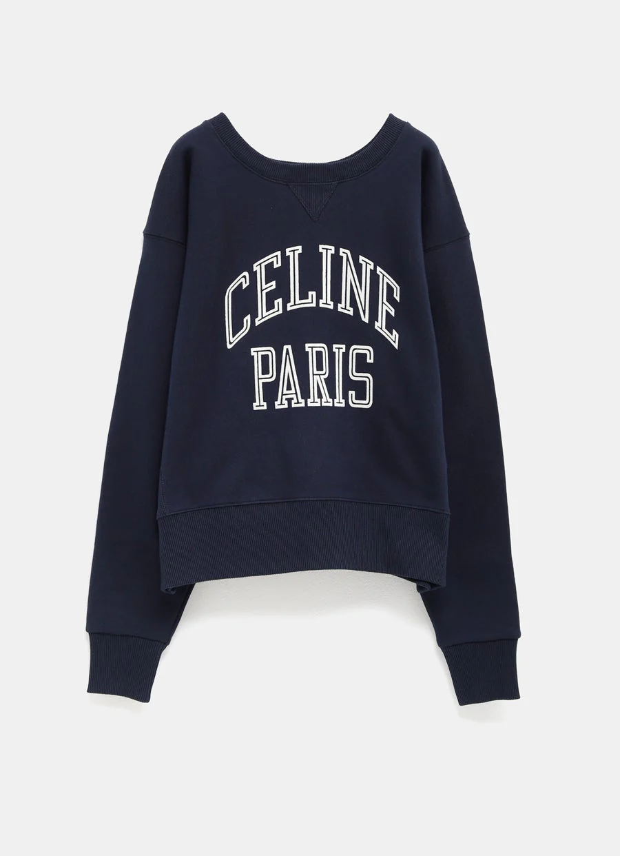 Sudadera de Celine en felpa de algodón con cuello redondo, logo flocado en la parte delantera, hombros acolchados y ribete de canalé. Corte holgado. Hecho en Portugal. Talla normal, elige tu talla habitual. Tallaje estándar para mujer.