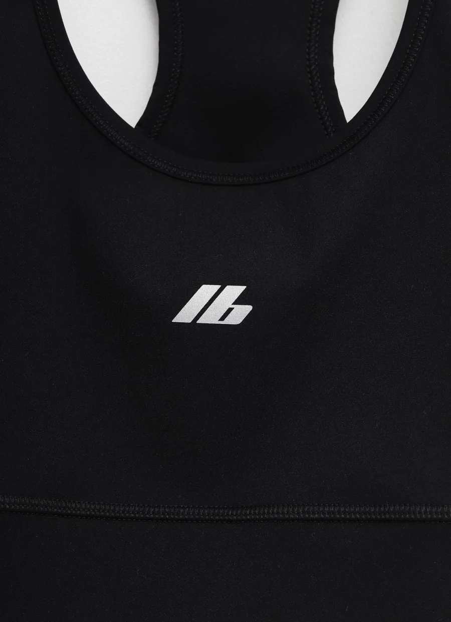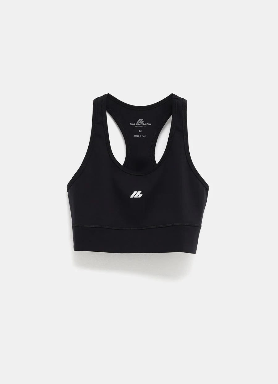 Sujetador de Balenciaga en elastano mate con puntada overlock, parte trasera estilo racer, logotipo activewear estampado en la parte delantera. Fabricado en Italia. Hecho en Italia. Talla normal, elige tu talla habitual. Tamaño estándar.