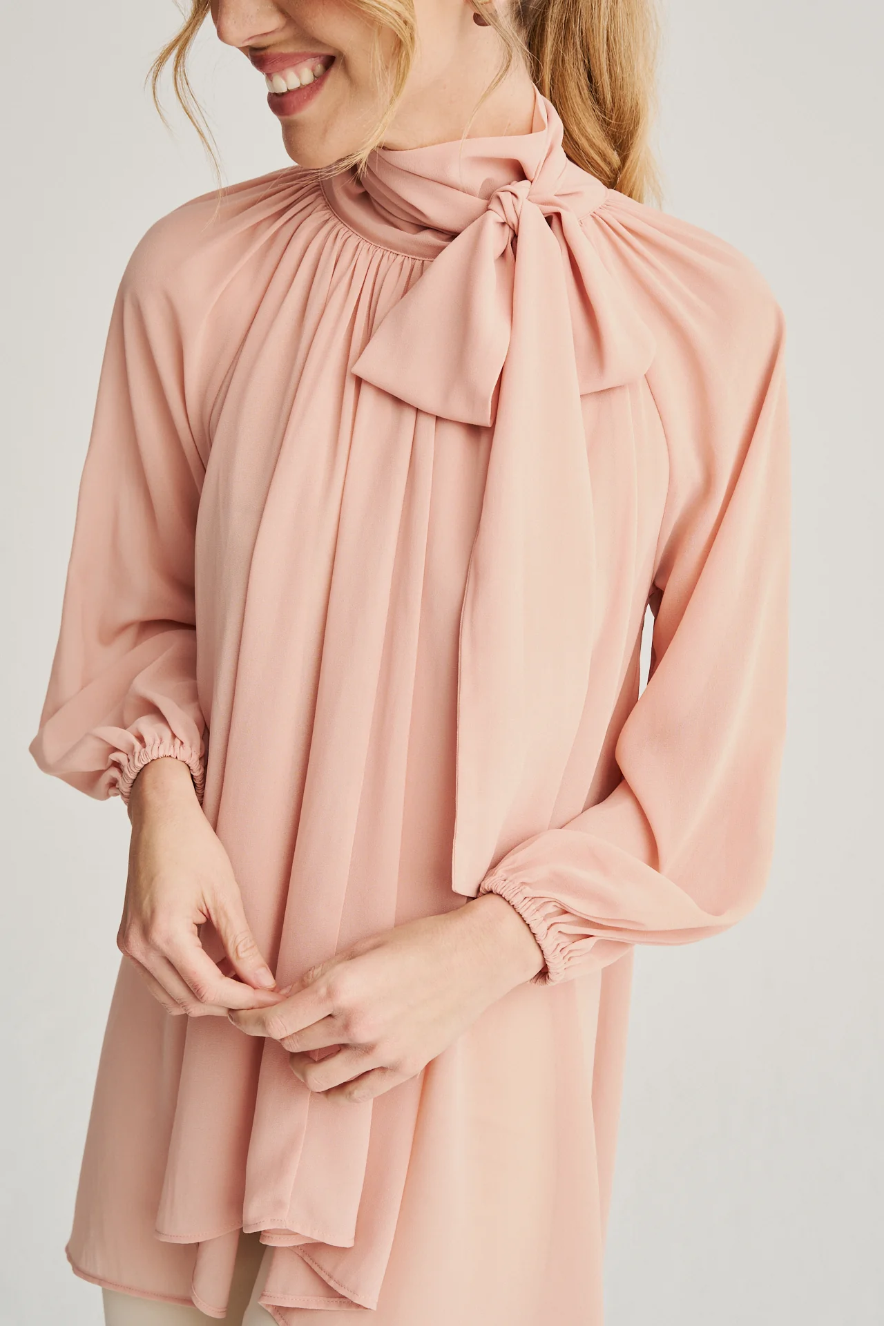 • Cuello Alto con Lazada Romántica: Un detalle encantador que añade feminidad y versatilidad al diseño, ideal para ocasiones especiales.