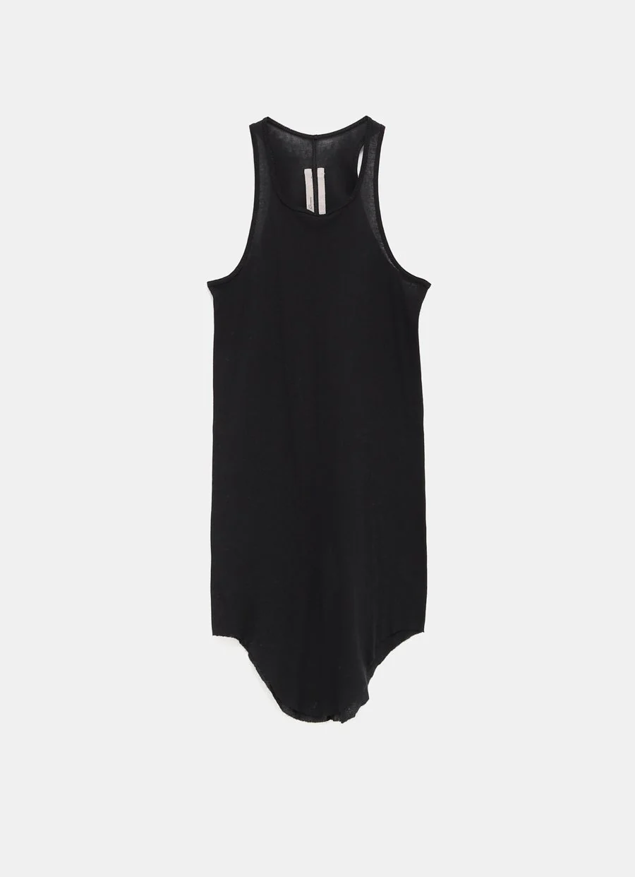 Top unisex de Rick Owens en punto de canalé con tirantes, bajo curvo y corte slim. Hecha en Italia. Talla normal, elige tu talla habitual. Tallaje Italiano.