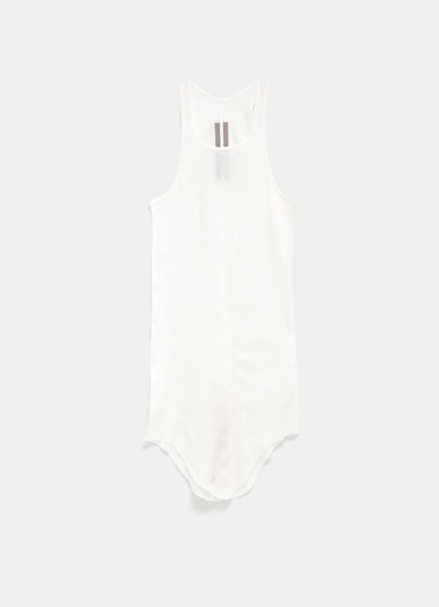 Top unisex de Rick Owens en punto de canalé con tirantes, bajo curvo y corte slim. Hecha en Italia. Talla normal, elige tu talla habitual. Tallaje Italiano.