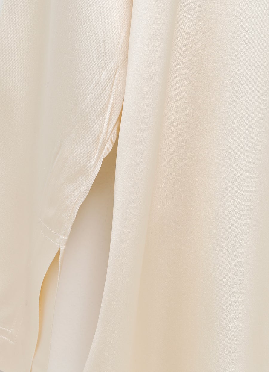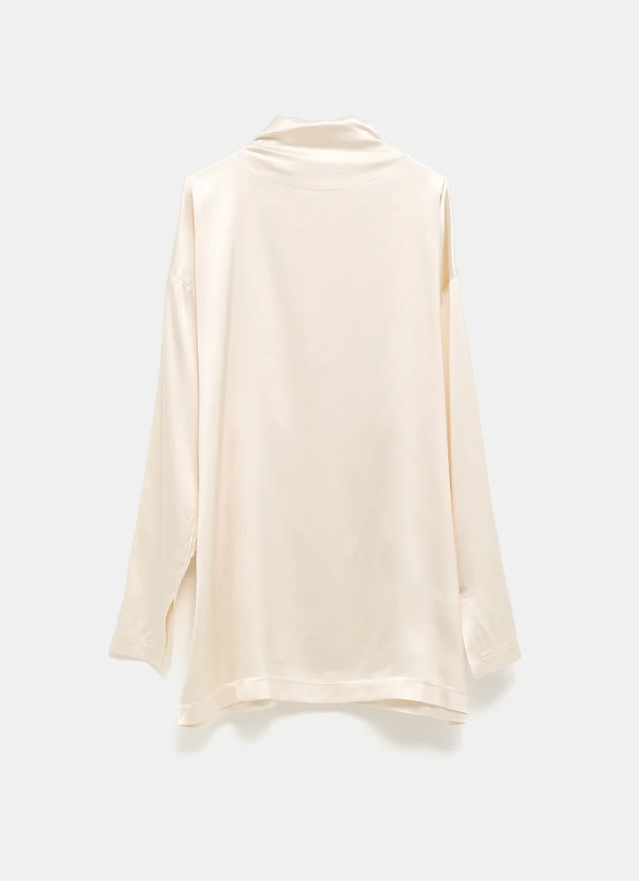 Top de Phoebe Philo en satén de seda elástico. Con cuello alto, detalle de nudo en la espalda y manga larga entallada. Hecho en UK. Corte fluido y relajada. Talla normal, elige tu talla habitual. Tallaje UE.
