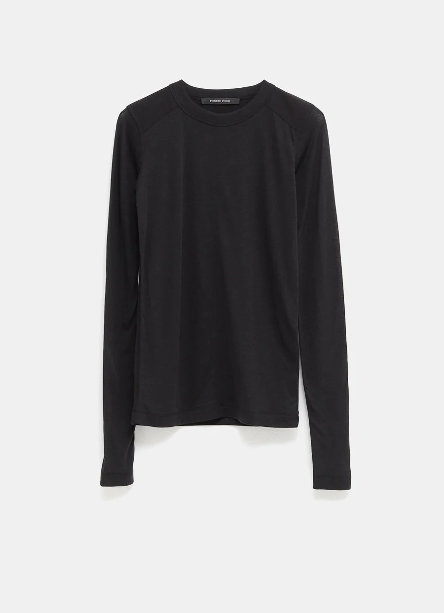 Top de Phoebe Philo en jersey mezcla de algodón y lyocell. Con cuello redondo, costuras visibles, parches en los hombros y corte ajustado. Hecho en Portugal. Talla normal, elige tu talla habitual. Tallaje estándar.
