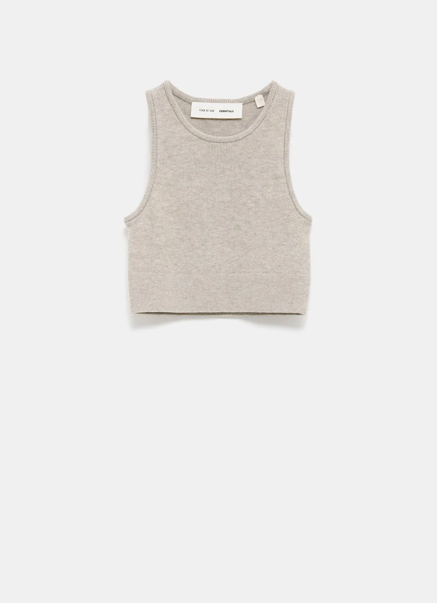 Top de The Essentials sin mangas cropped de punto acanalado. Cuello redondo y parche de logo en la espalda. Corte ajustado. Talla normal, elige tu talla habitual. Tallaje estándar para mujer.