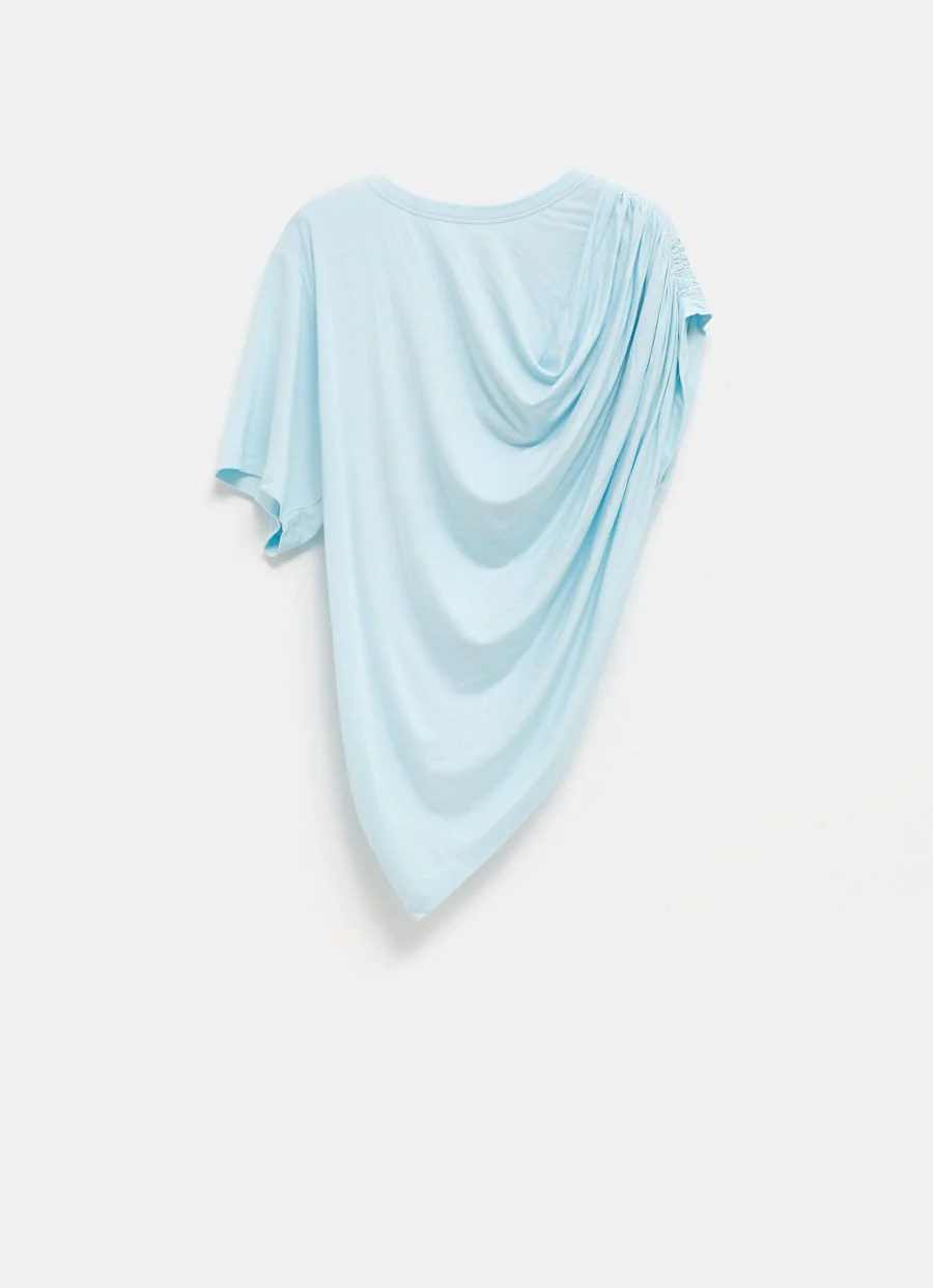 Top de Gimaguas de manga corta con bajo asimétrico detalle fruncido en un hombro y efecto drapeado en la parte frontal y trasera. Corte ajustado. Hecho en Portugal. Talla normal, elige tu talla habitual. Tallaje estándar para mujer.