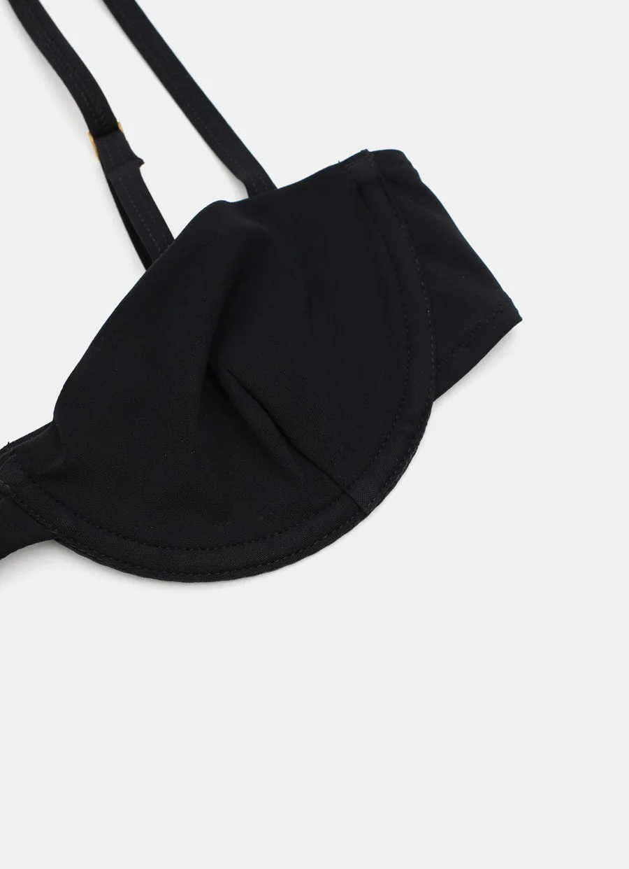 Top de bikini de Toteme en tejido elástico de poliamida reciclada. Diseño de copas semicirculares con refuerzo, tirantes ajustables finos y cierre posterior con clip dorado. Talla normal, elige tu talla habitual. Tallaje estándar. -Debido a su naturaleza íntima, no se aceptan devoluciones.