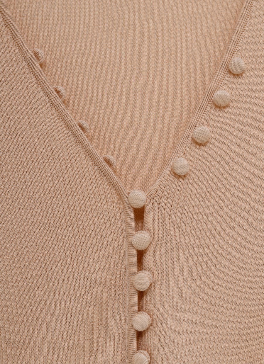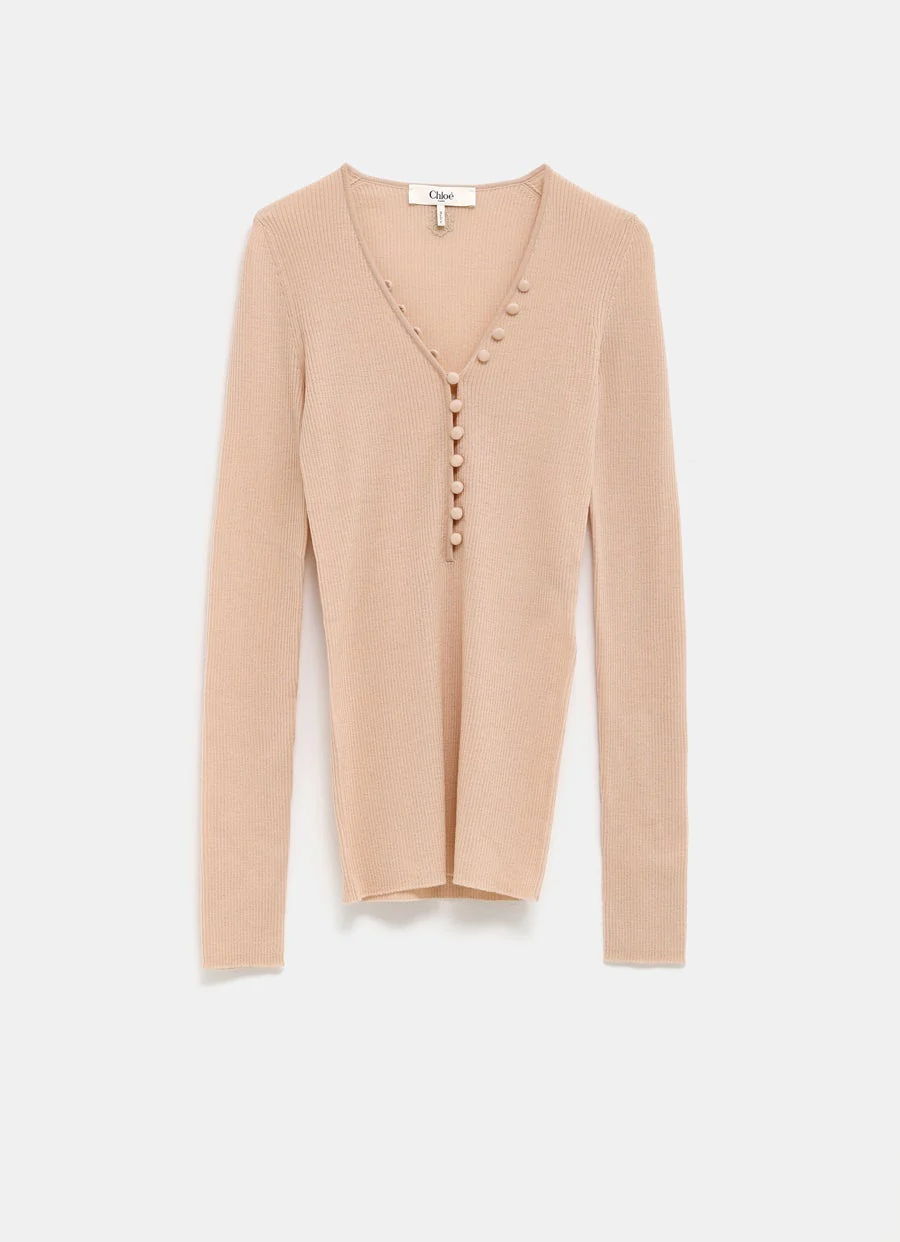 Top de Chloé de punto de canalé con cuello de pico, cierre con botones hasta la mitad, manga larga, inicial bordada y corte ajustado. Talla normal, elige tu talla habitual. Tallaje estándar.