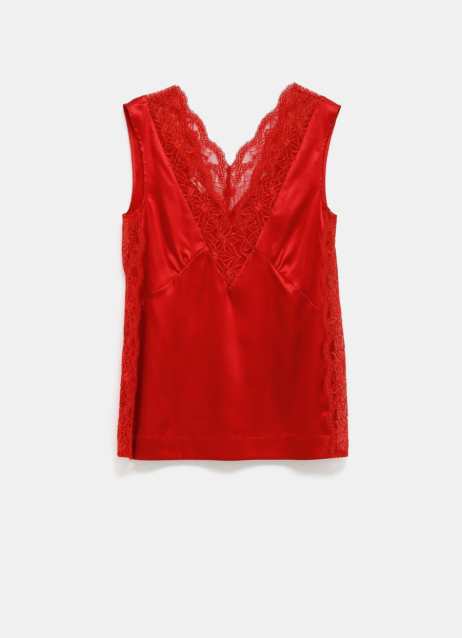 Top sin mangas de Dries Van Noten con escote de pico y remates de encaje. Corte regular. Talla normal, elige tu talla habitual. Tallaje francés.