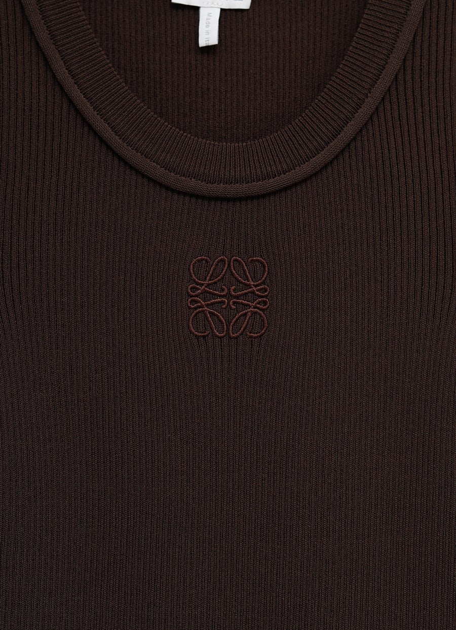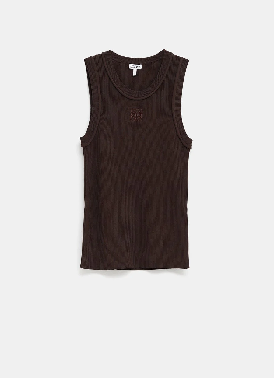 Top de Loewe en punto de canalé de viscosa con Anagrama bordado en la parte frontal, escote redondo, corte ajustado y largo normal. Hecho en Portugal. Talla normal, elige tu talla habitual. Tallaje estándar para mujer.