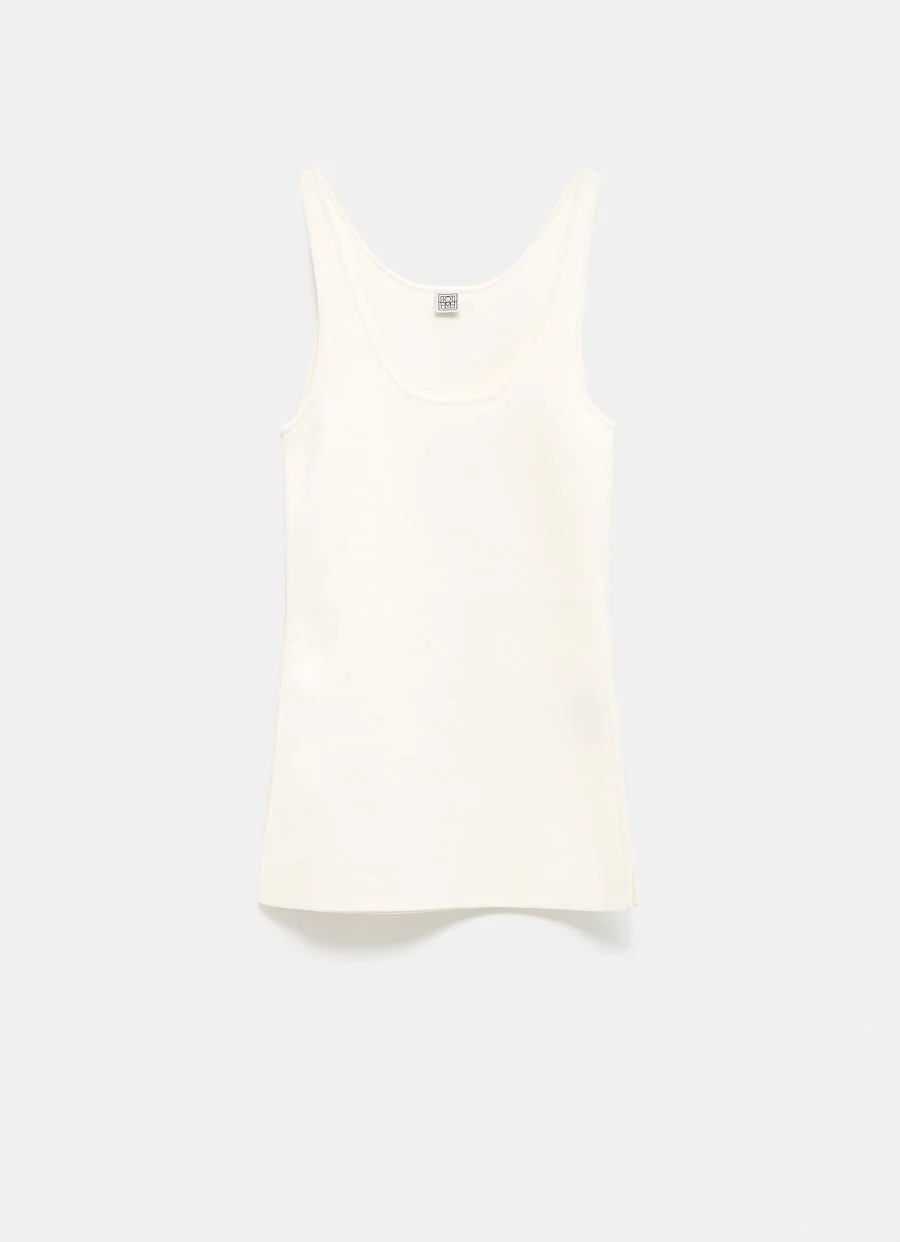 Top sin mangas de TOTEME en jersey de punto compacto, con escote redondo, remates de canalé y corte ajustado. Talla normal, elige tu talla habitual. Tallaje estándar para mujer.